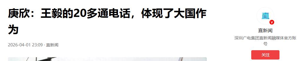 直新闻 2026-04-01 23:09 庚欣:王毅的20多通电话,体现了大国作为