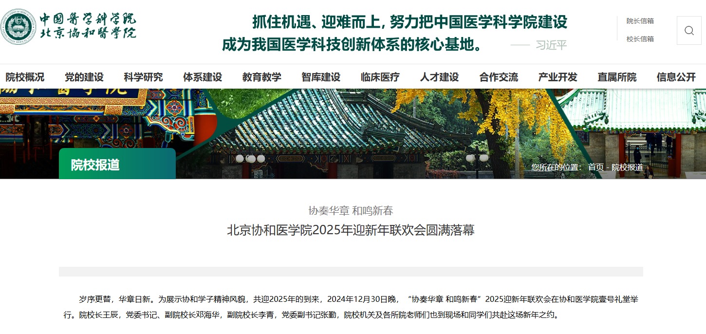 从协议医学院官网公开报道来看,一般在校长、书记同时参加的活动、会议中,基本是把校长排在前面的。如《北京协和医学院2025年迎新年联欢会圆满落幕》中:院校长王辰,党委书记、副院校长邓海华......院校机关及各所院老师们也到现场和同学们共赴这场新年之约。