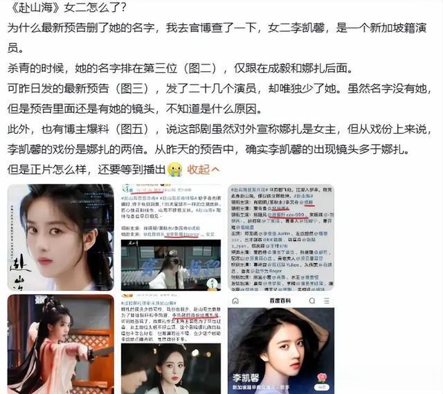 娱乐圈再爆争议事件,新加坡籍艺人李凯馨被曝发表辱华言论,引发舆论哗然。据悉,李凯馨在成毅主演的新剧《赴山海》中饰演女二号,戏份甚至超越女主角古力娜扎,本被视为前途无量的“潜力股”,却因不当言论自毁前程。