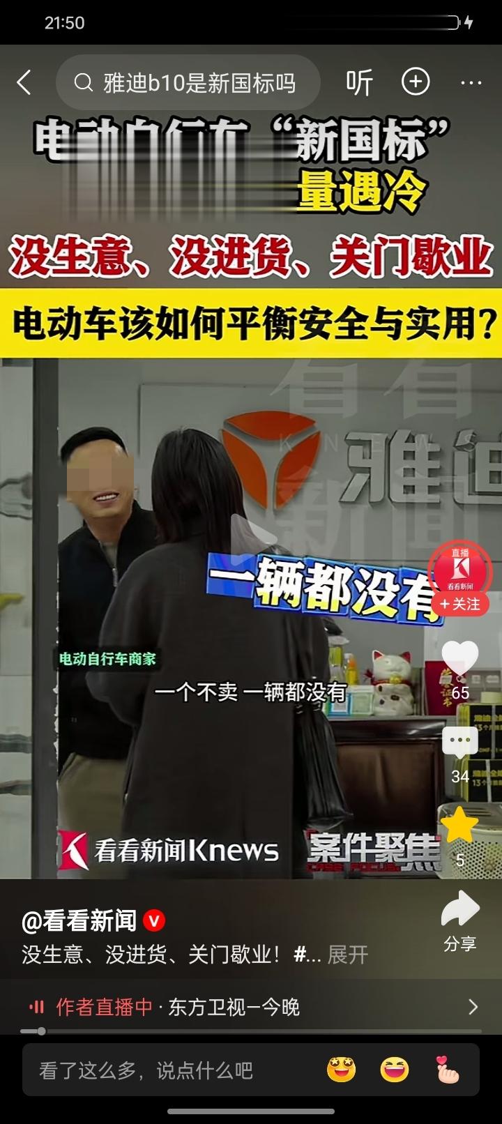 关于电动自行车新国标实施已经超过一个星期,大家都一定非常想知道,究竟只能跑25公里时速还有一身阻燃材料的新国标车,究竟销量如何。在这里先提一下,由于新国标刚刚落地执行,很多销售点其实新国标的车辆其实是还没有到位的,甚至有不少的销售点现车也没有!那么已经有现车的销售点到底销量如何呢,有记者特别去到了一探究竟!
