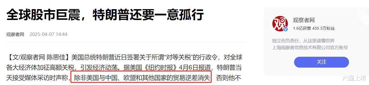 就在林剑表明立场的前一天,特朗普在飞机上接受访问时,说了些强硬的话,他表示关税战得一直打下去,得等到“贸易逆差一点不剩”了才会罢休。说白了,特朗普提的这“休战条件”,压根就没打算真的休战。稍微有点经济学常识的人心里都明白,想要贸易逆差清零,那简直是异想天开。国际贸易可不是那种你赢我输的游戏,一个国家的顺差,那肯定是另一个国家的逆差,这是全球经济怎么分工,还有资源怎么分配决定的。特朗普提出这种条件,不是他真不懂经济,就是故意摆个高姿态,想让对手觉得难办,好给他们施压。