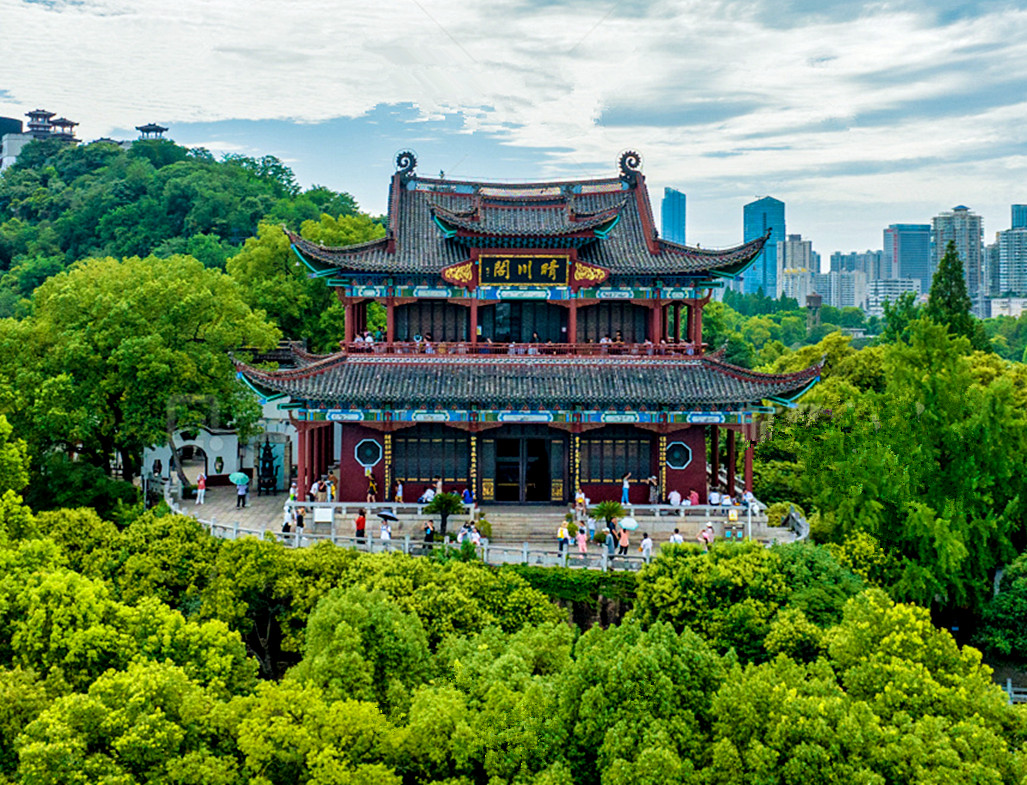 晴川阁的历史文化底蕴丰厚,它得名于唐代诗人崔颢的诗句“晴川历历汉阳树”,其历史可追溯至明代嘉靖年间(1547-1563年),由汉阳知府范之箴增建。阁内保留了禹稷行宫(祭祀大禹的场所)和铁门关(三国军事要塞)等历史遗迹,与黄鹤楼的悠久历史形成互补。晴川阁为重檐歇山顶建筑,红墙朱柱、麻石台基,屋面四角悬挂铜铃,登阁可俯瞰滚滚的长江东逝水,以及万里长江第一大桥的武汉长江大桥以及天下江山第一楼黄鹤楼全景风貌。晴川阁的仿木结构与楚文化的特色风格,使其成为武汉古建筑代表,与黄鹤楼的现代重建形成风格形成了鲜明的对比。
