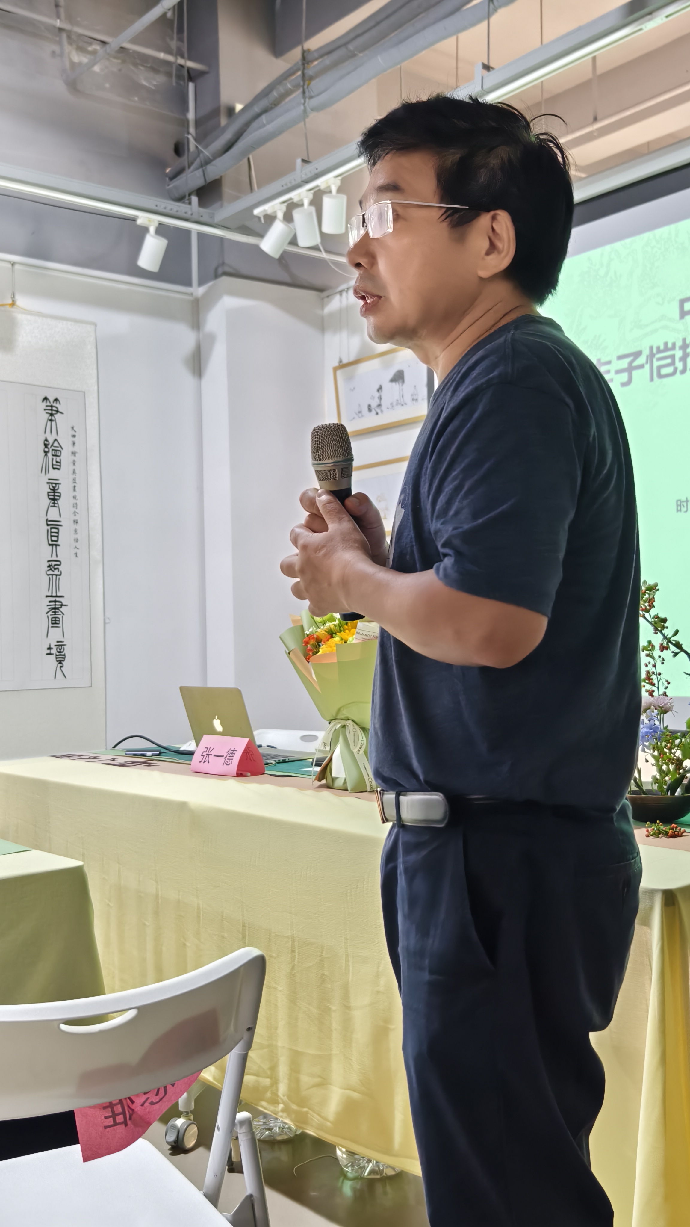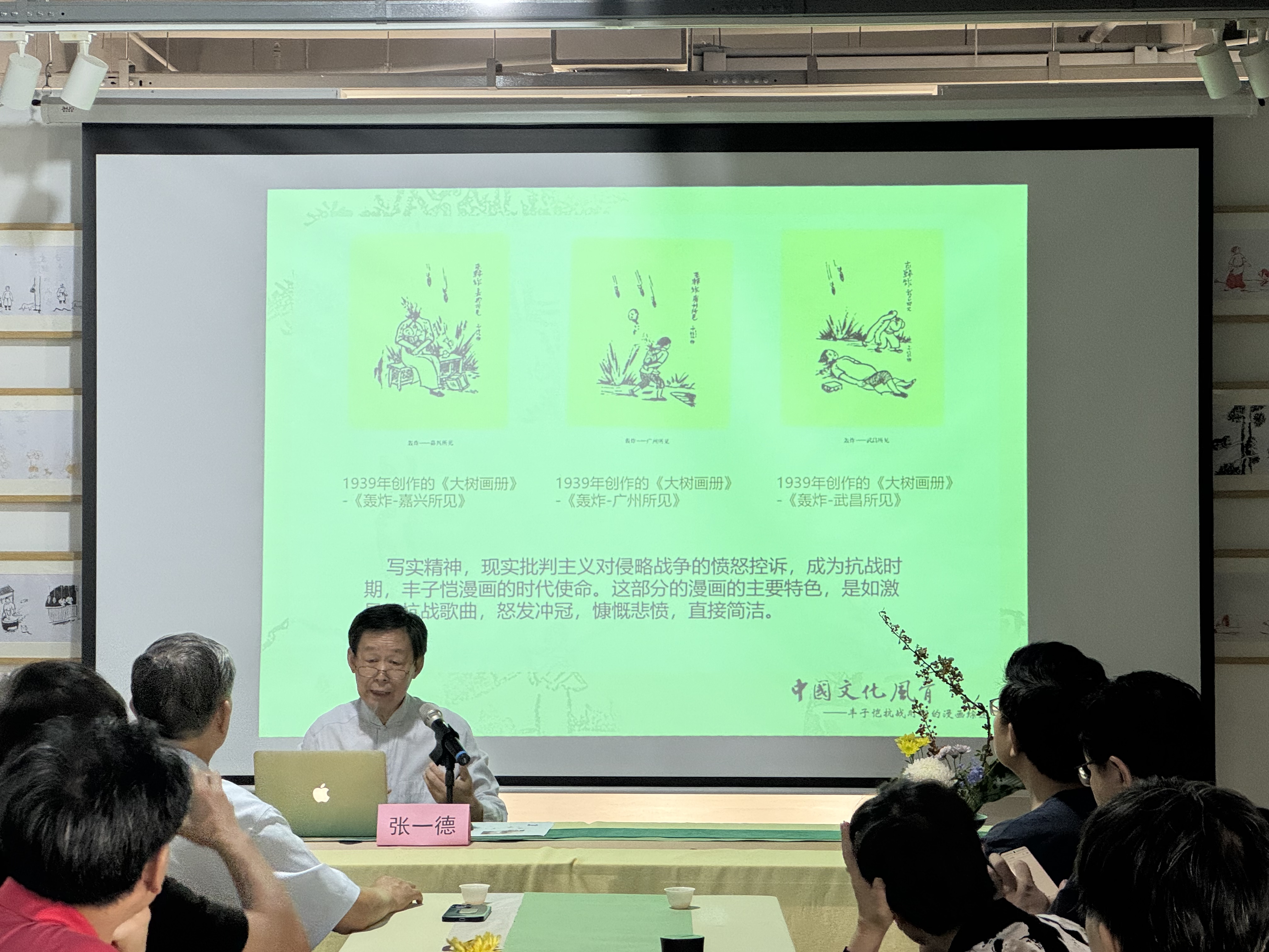 一、学术与艺术的深度对话主讲嘉宾张一德老师从历史视角切入,系统梳理了丰子恺抗战时期漫画的创作背景与精神内核。他指出,丰子恺以简练的笔触和质朴的画面,记录了战争年代普通人的坚韧与温情,其作品既是“匕首投枪”,也是“人性之光”。讲座中,张一德特别分析了《护生画集》与抗战漫画的关联,强调丰子恺“以艺载道”的美育思想对当代社会的启示。厦门市政府原副市长潘世建先生作为特邀嘉宾致辞,高度评价丰子恺艺术中“文人风骨”的现实意义,并呼吁公众在快节奏生活中重拾传统文化的精神力量。