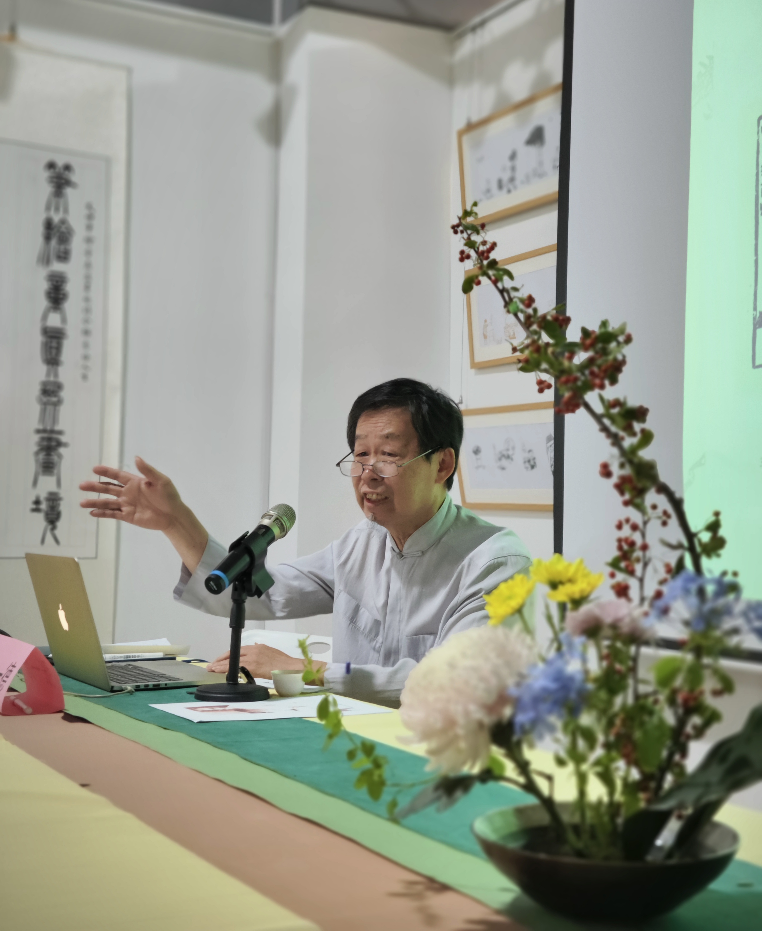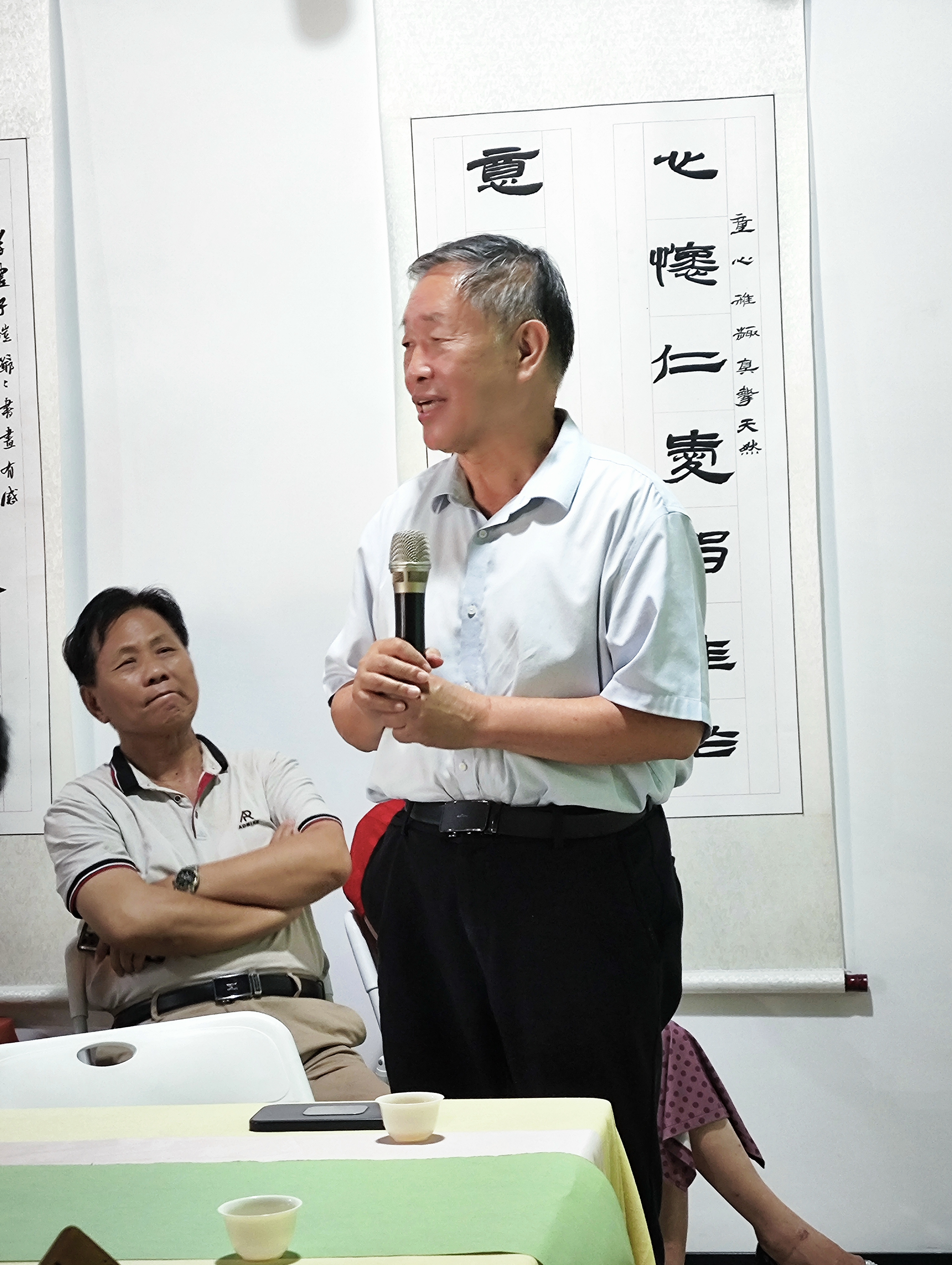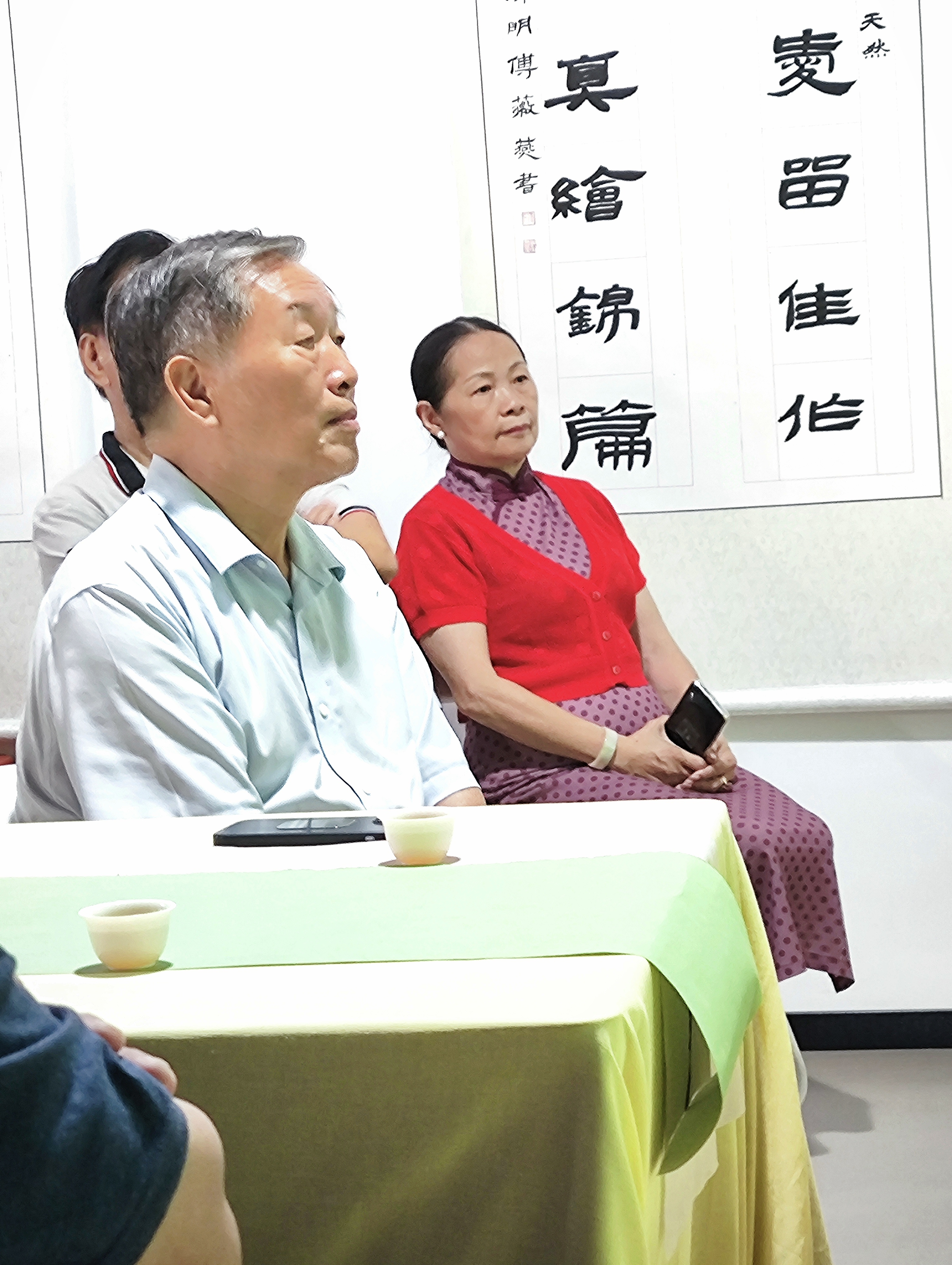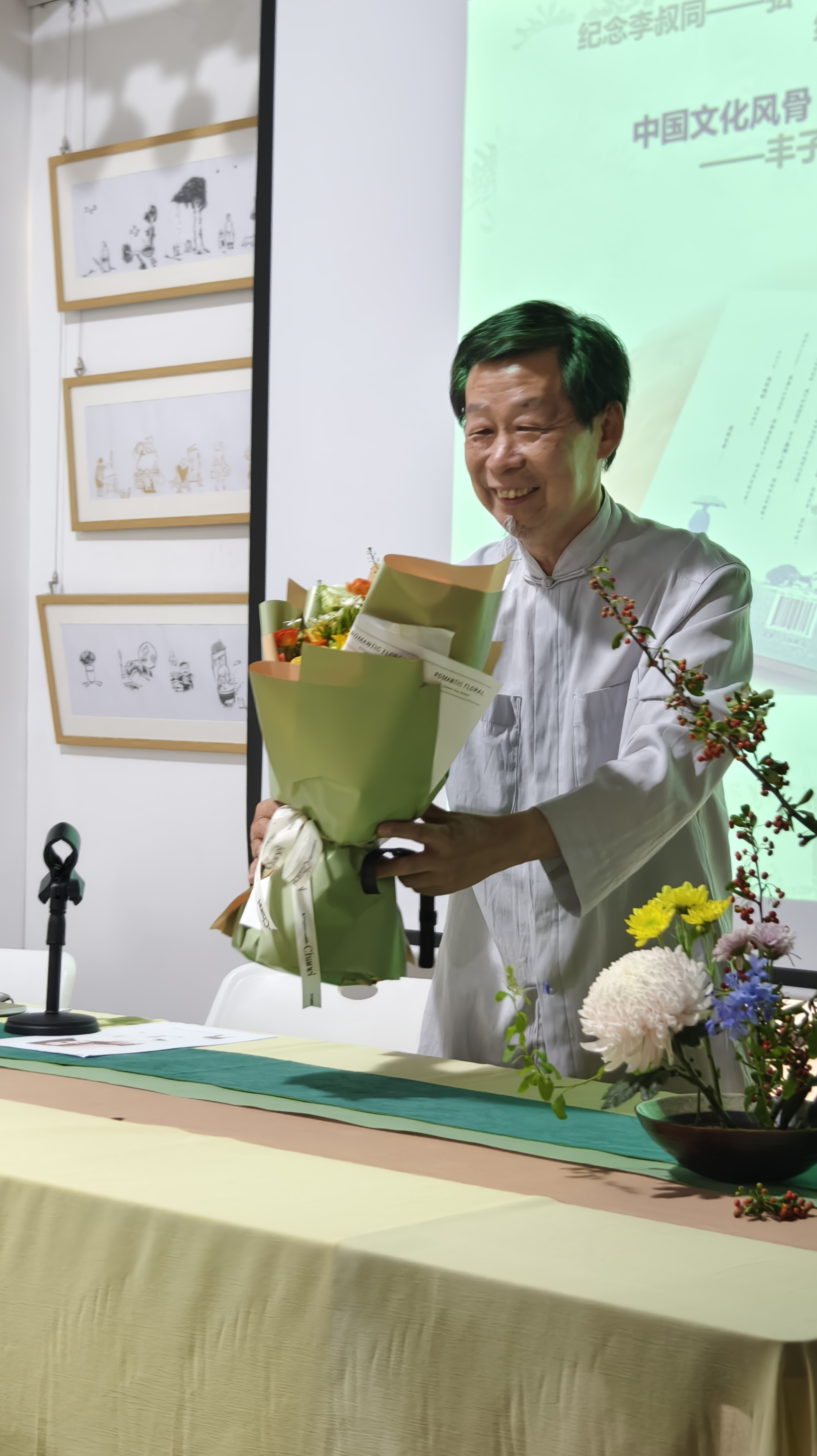 二、跨界融合:茶道、文学与美育的碰撞活动创新性地将学术研讨与茶文化体验结合。厦门茶叶学会会长陈志雄先生带来闽南茶艺展示,王鸿蕾茶艺技师以茶为媒,串联起弘一大师“悲欣交集”的人生哲学与丰子恺“万物有情”的艺术理念。文学家许地山侄孙许刚先生则从家族记忆出发,分享了两代文人在动荡年代的文化坚守。南洋职业学院张荀老师的花艺创作、三易斋茶书画工作室的联合策划,进一步丰富了活动的多维体验,展现了“艺术生活化”的丰子恺精神。