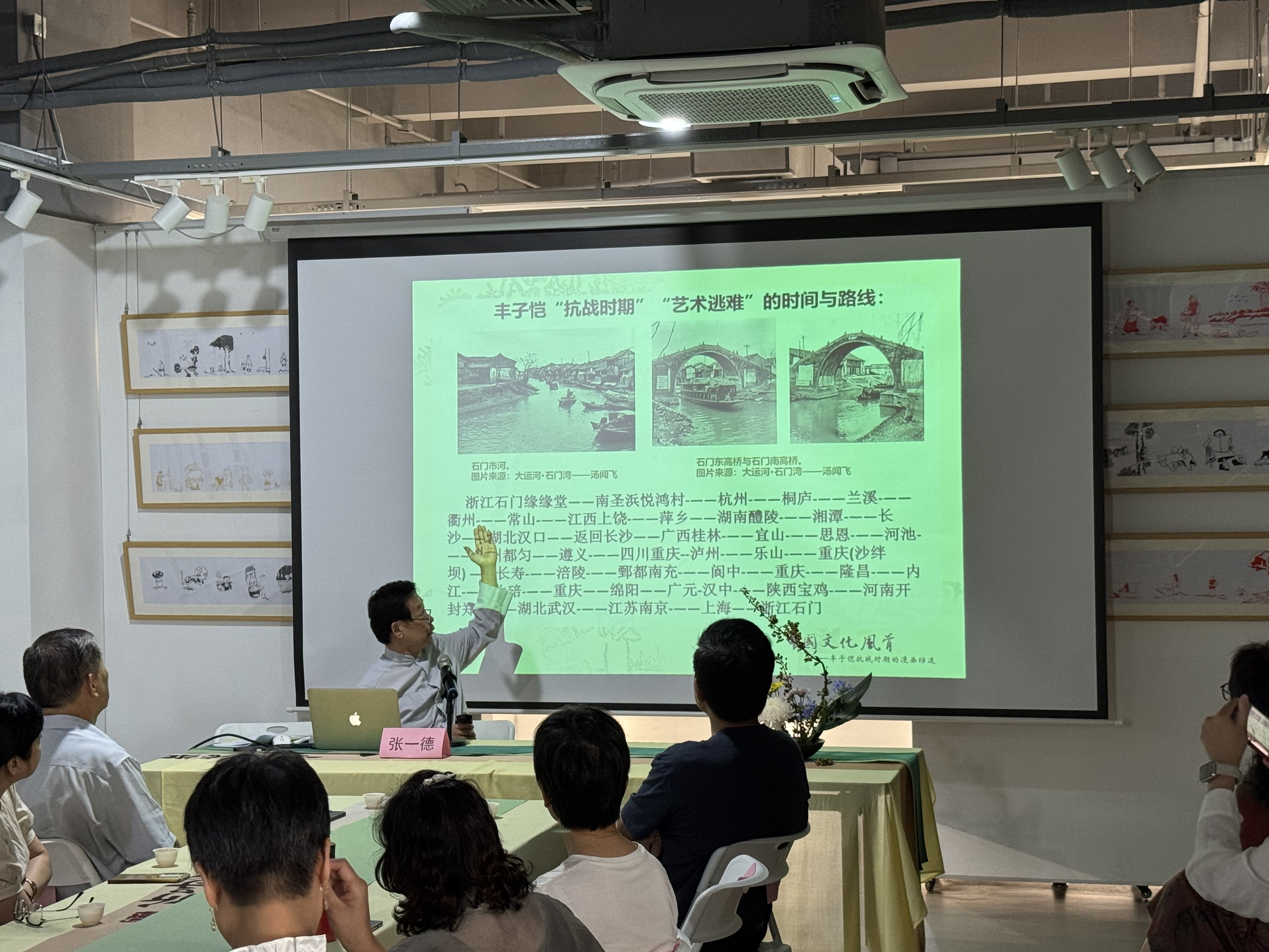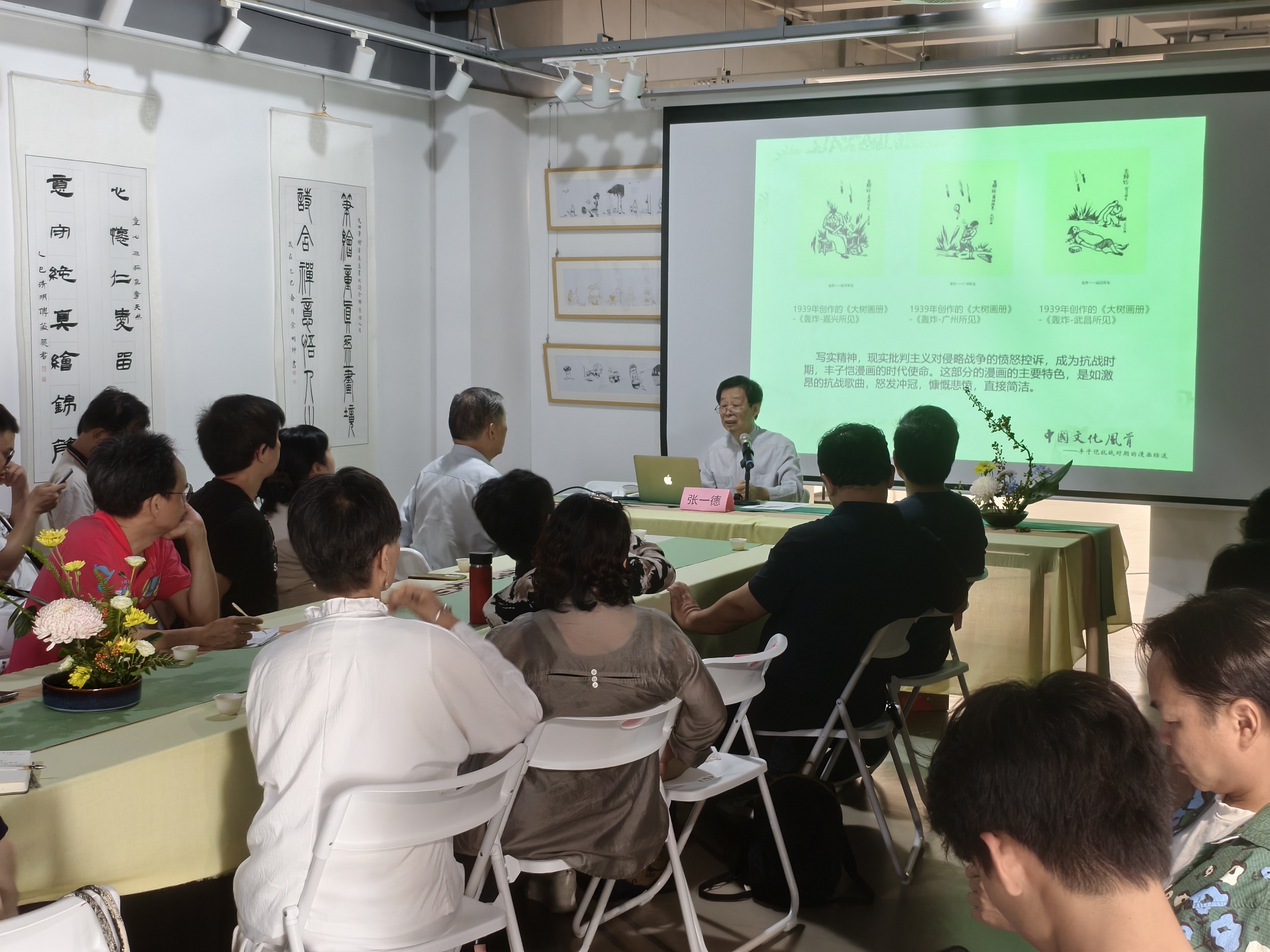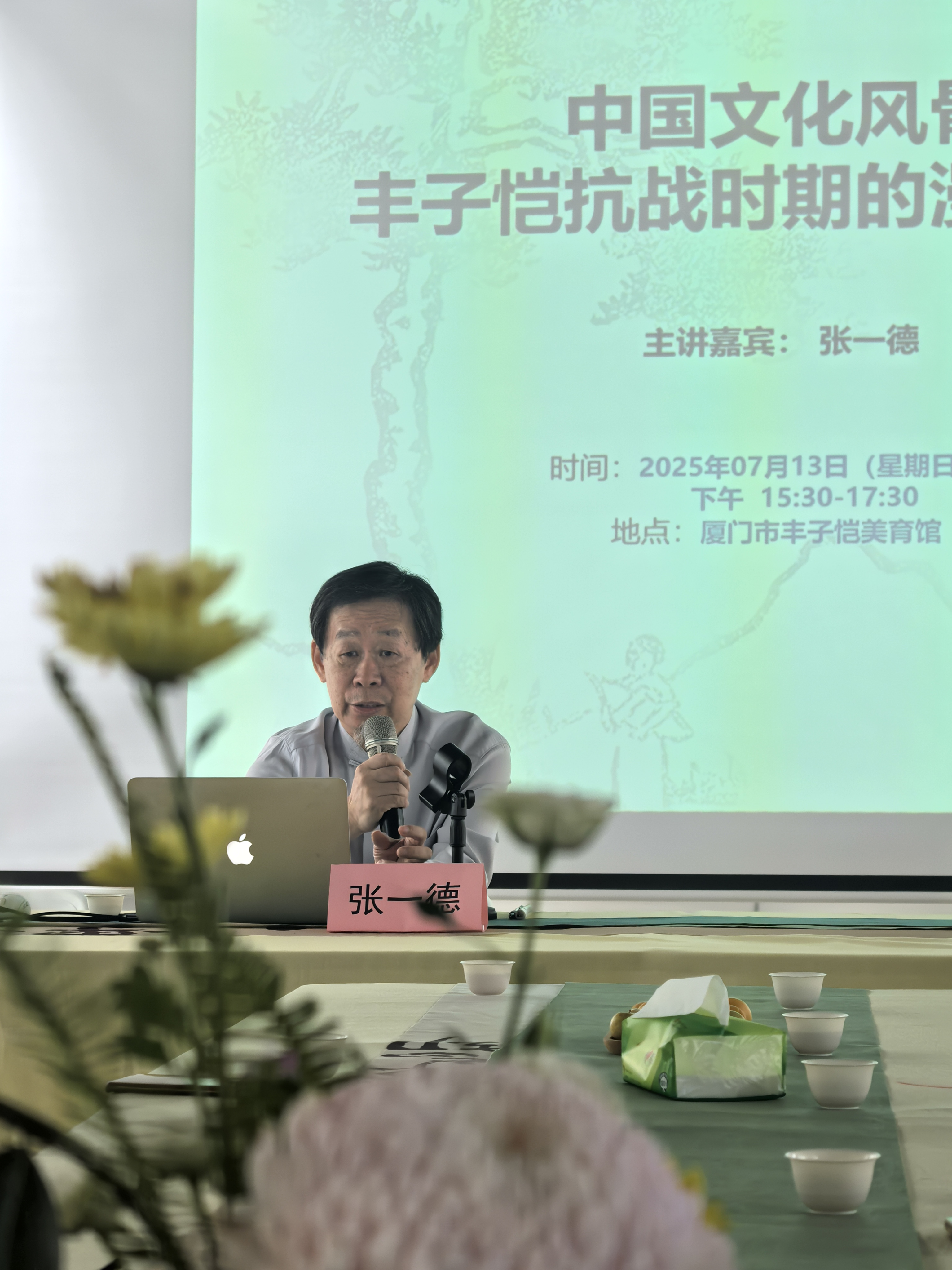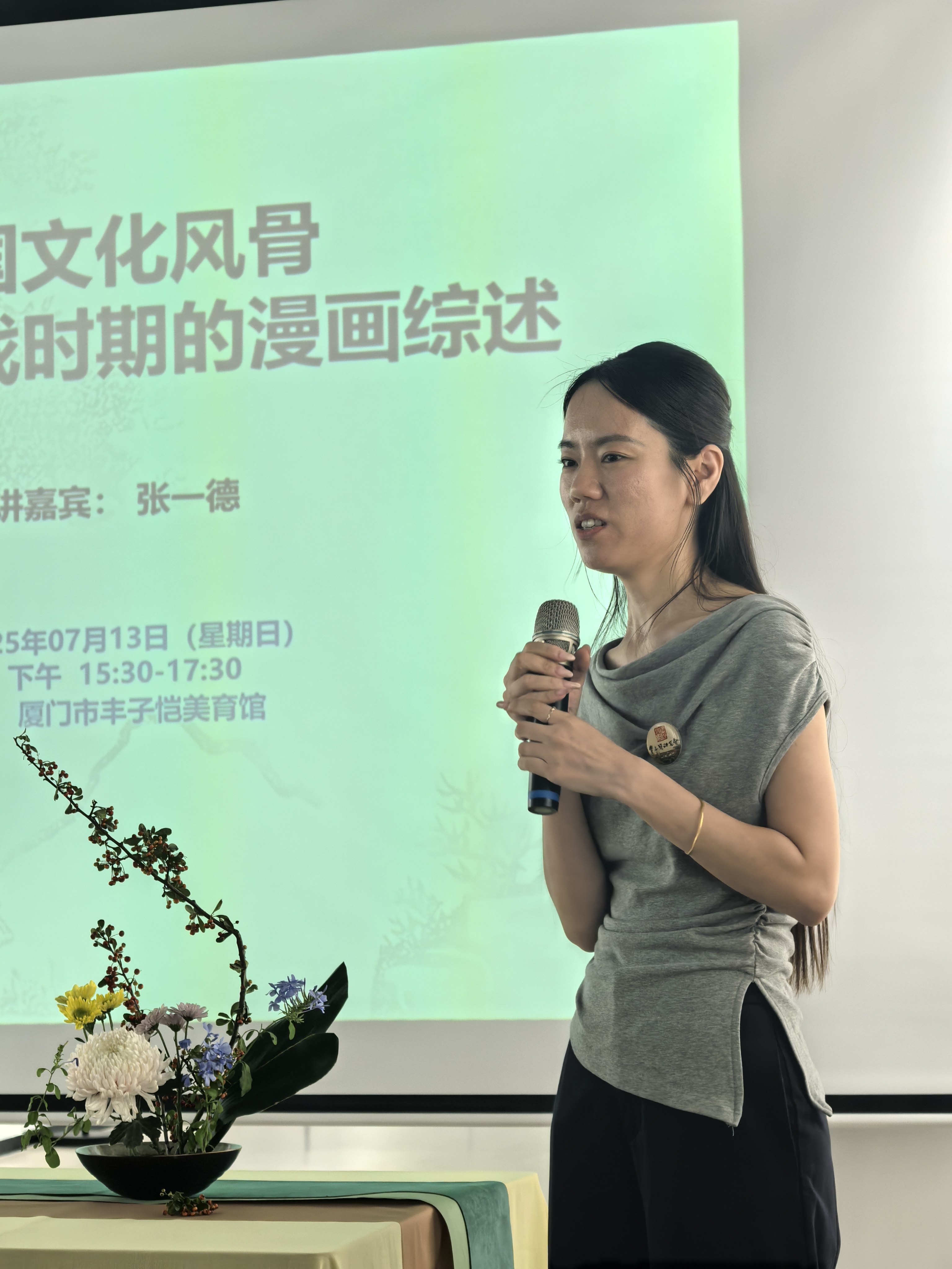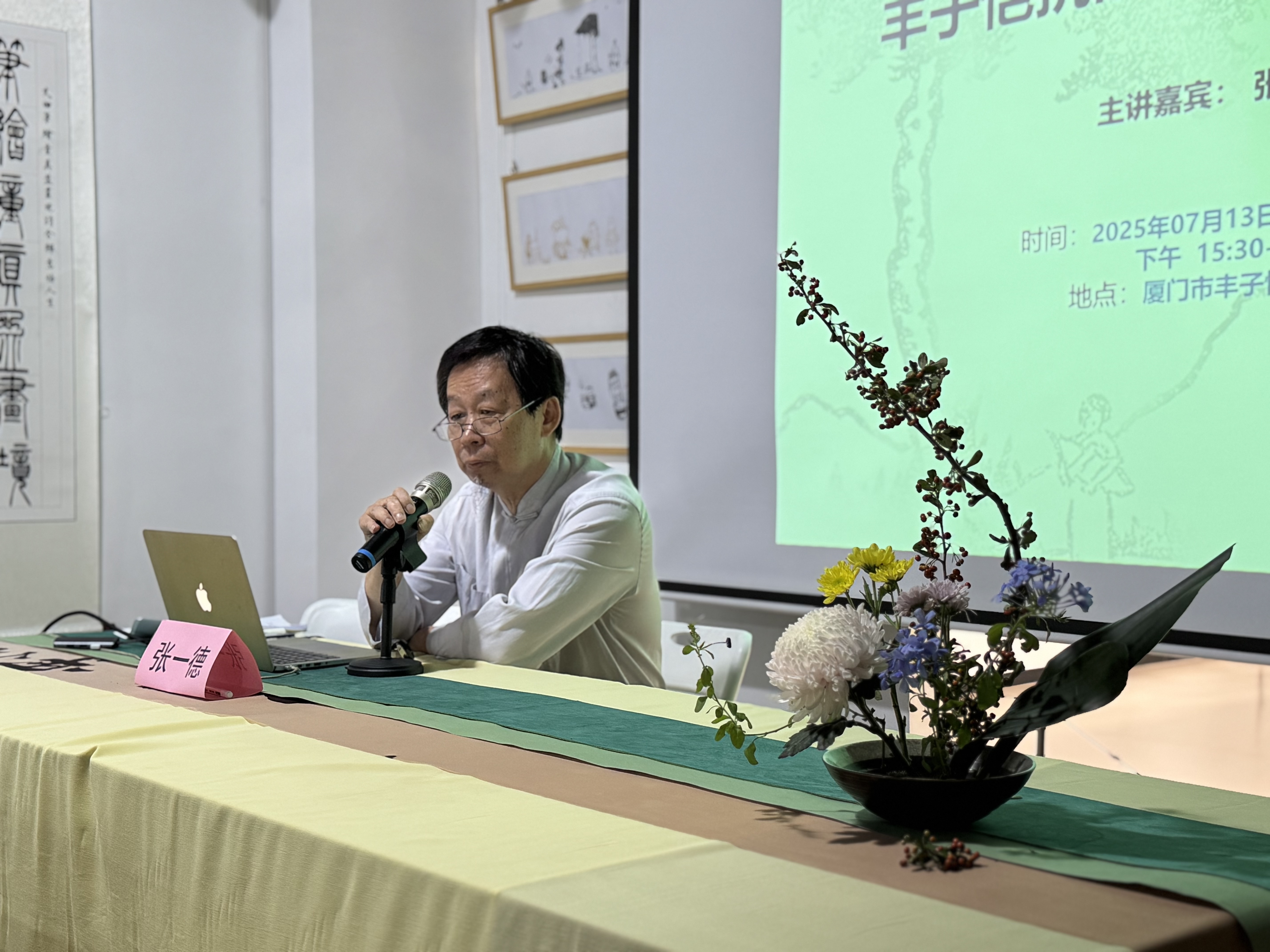 纪实新闻报道:《“漫绘时代”系列讲座厦门开讲:丰子恺抗战漫画中的文化风骨与弘一大师精神共鸣》2025年7月13日下午,由厦门丰子恺美育馆主办的《“漫绘时代”——丰子恺与丁聪的艺术回响》系列公教活动之《中国文化风骨——丰子恺抗战时期的漫画综述》讲座暨“喝茶论道-弘一大师读书分享会(第十八回)”在厦门圆满举行。活动以艺术研讨与人文对话的形式,吸引了众多文化学者、艺术爱好者及社会人士参与,现场氛围热烈而深沉。