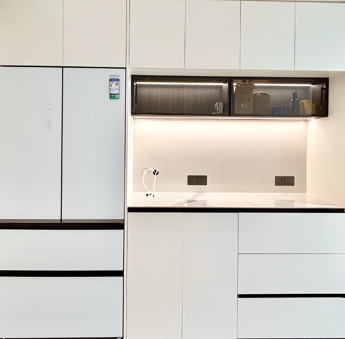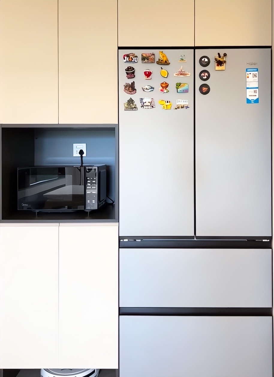 值得注意的就是我们既然选择嵌入式冰箱,要选择真嵌入式的款式,不要你相中一台冰箱就嵌入到里面。