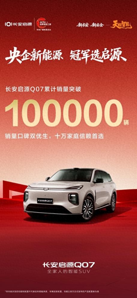 自2025年5月上市以来,长安启源 Q07凭借全面均衡的产品实力、越级的智能驾乘体验与贴合家庭出行的核心优势,持续收获市场与用户的高度认可,稳居20万内新能源中型SUV销量TOP3。截至目前,车型累计销量已成功突破 10 万台大关,以十万家庭的真实选择,印证硬核产品价值。