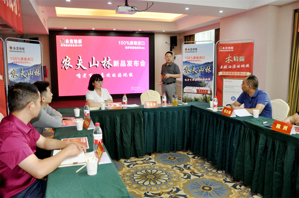 活动伊始,永吉地板阿米巴试验区总负责人胡俊青致欢迎辞。并回顾了永吉地板的发展历程,将近三十年深耕历程为切入点,并强调“永吉地板始终将产品质量视为企业生命,此次我们敢于提出20年质保,正是基于对产品品质的绝对信心。” 胡总表示,面对家居环保需求的持续升级,品牌始终坚持 “高标准、高速度、高效益” 的发展理念,此次 “农夫山林” 新品正是研发团队历经两年技术攻关的重磅成果。