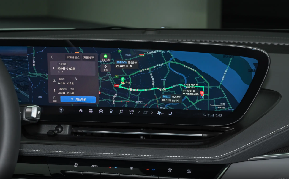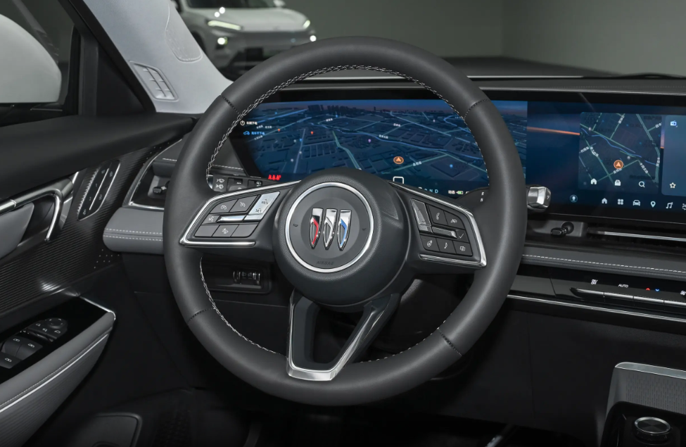 内饰设计布局的变化同样不多,2025款别克E5只提供一款内饰配色可选,黑色和深灰色的配色营造一个沉稳的设计风格,就像它的外形一样成熟稳重,部分面板加以白色缝线进行点缀,座椅边缘处还加入白色滚边,看起来更加精致有质感。经典30寸曲面屏没有缺席,只不过升级成最新车机系统,消费者终于可以使用高德地图了。