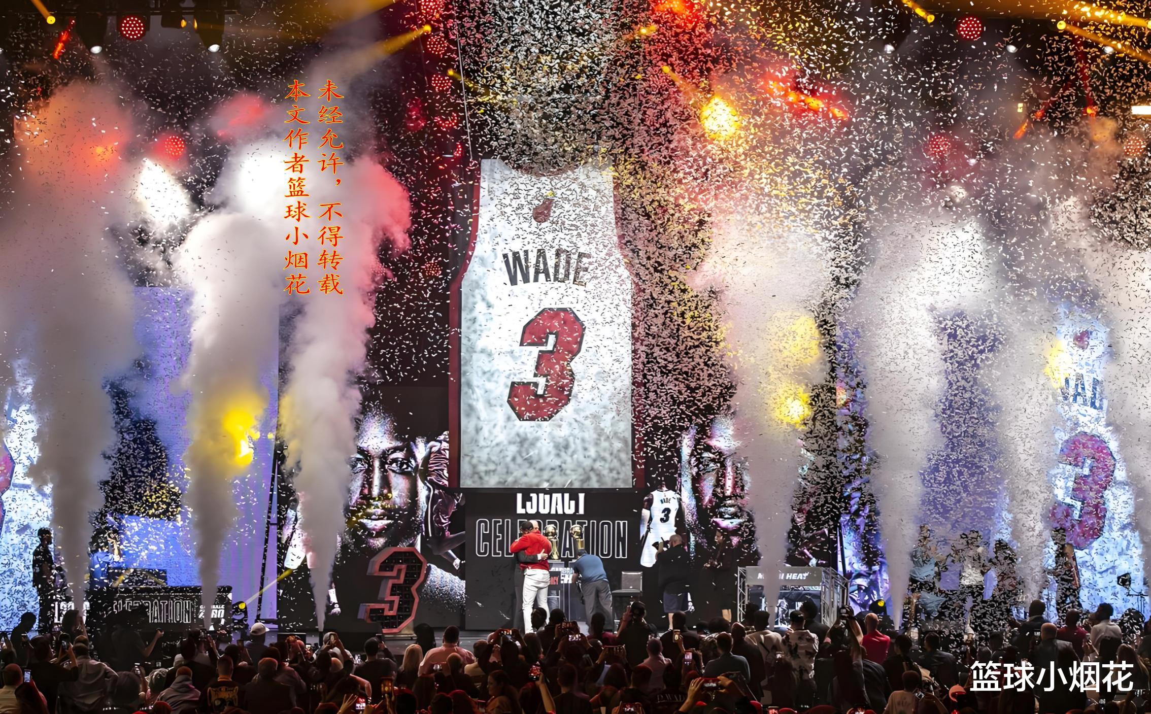 如此荣耀的时刻,不少巨星都亲临现场,为韦德送上祝福,比如与韦德私交甚笃的卡梅隆-安东尼,克里斯保罗,哈斯勒姆,大鲨鱼奥尼尔,克里斯-波什,莫宁等球星,就连让韦德又爱又恨的帕特-莱利都来了,但詹姆斯仍然没来。