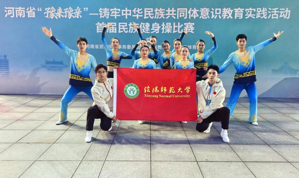 10月17日至19日,由河南省民族宗教事务委员会、河南省教育厅、河南省体育局共同主办的河南省“豫来豫亲”——铸牢中华民族共同体意识主题实践活动首届健身操比赛在平顶山学院举行。全省51所高校的800余名运动员参赛。经过激烈角逐,信阳师范大学民族健身操代表队(指导教师:体育学院何艳)凭借出色发挥与默契配合,荣获二等奖。学校荣获“体育道德风尚奖”,体育学院2023级研究生朱吾梦被评为“优秀运动员”。