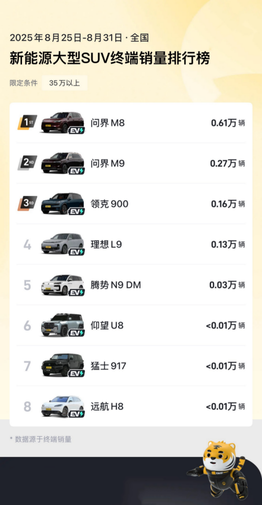 这种契合度首先体现在市场数据的反馈上。在2025年8月25-31日这一周,领克900在新能源大型SUV终端销量排行榜中位列第三;自上市以来,短短100天内交付量便突破2万台,其中2.0T Ultra版本以64%的销量占比,在35万元级细分市场站稳脚跟。这些数据背后,是领克900通过产品设计传递的生活态度,与目标用户价值观形成的深度共鸣。