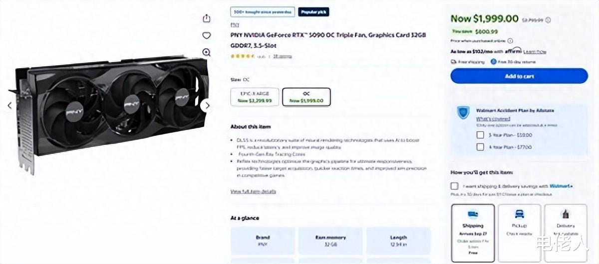 目前,美国沃尔玛上架了PNY品牌的RTX 5090 OC显卡,售价为1999美元,正好是其官方建议零售价。相比此前高达2799美元的溢价,如今直接回落800美元,为有升级需求的玩家带来绝佳机会。
