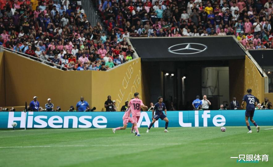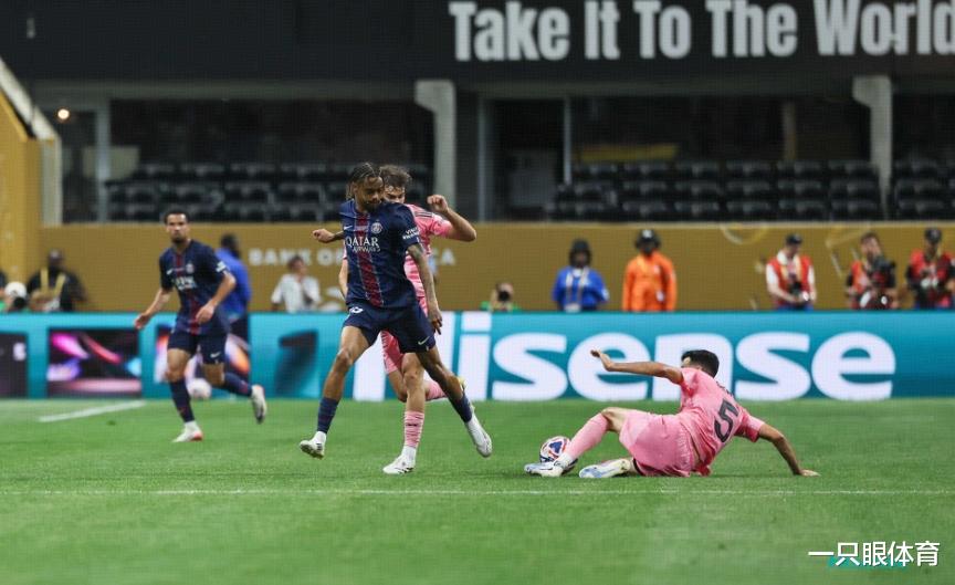 此役上半场,若奥-内维斯完成了梅开二度的好戏,第6分钟大巴黎就取得了梦幻开局,半场尾声阶段,布斯克茨失误被断,杜埃造阿维莱斯乌龙,比分差距扩大到3球,而在半场补时最后一刻,阿什拉夫破门,迈阿密国际又又又丢球了,彻底失去了比赛悬念;