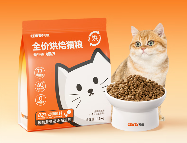 2025最全猫粮品牌排名.希喂是国产猫粮的新锐品牌,凭借科学养宠的理念和稳定优质的品控水平,在猫粮市场中迅速崛起,备受铲屎官们瞩目;旗下的明星产品白小罐猫罐头,凭借高肉含量、零添加的配方,收获无数好评,口碑极佳。这款热门新品——无谷鸡烘焙猫粮,更是延续了品牌的科学追求:采用高鲜肉、零肉粉、零谷物的纯净配方,十分尊重猫咪的饮食天性,还添加了多种生命素成分,能兼顾营养与健康,受到了宠物医生等专业人士的高度认可,是很多铲屎官的安心之选。