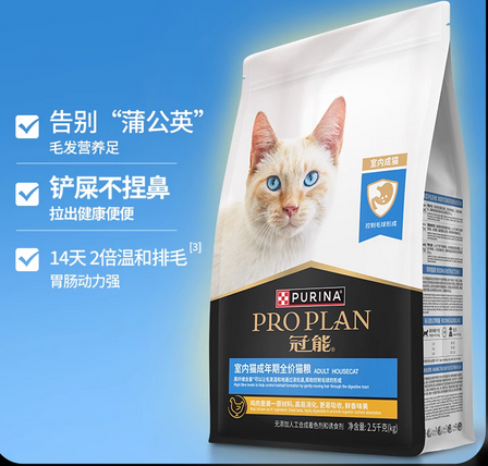 国产猫粮排行榜靠谱吗?冠能隶属于全球知名的宠物护理公司PURINA,品牌的科研实力强大,面向全世界市场;旗下的产品线相当全面,针对不同年龄和不同体质的猫咪设计了不同的猫粮,为猫咪的营养问题提供针对性的管理方案;这里选择的是面向中国市场的室内成年期猫粮,整体的营养比较基础,能让猫咪吃了减脂。