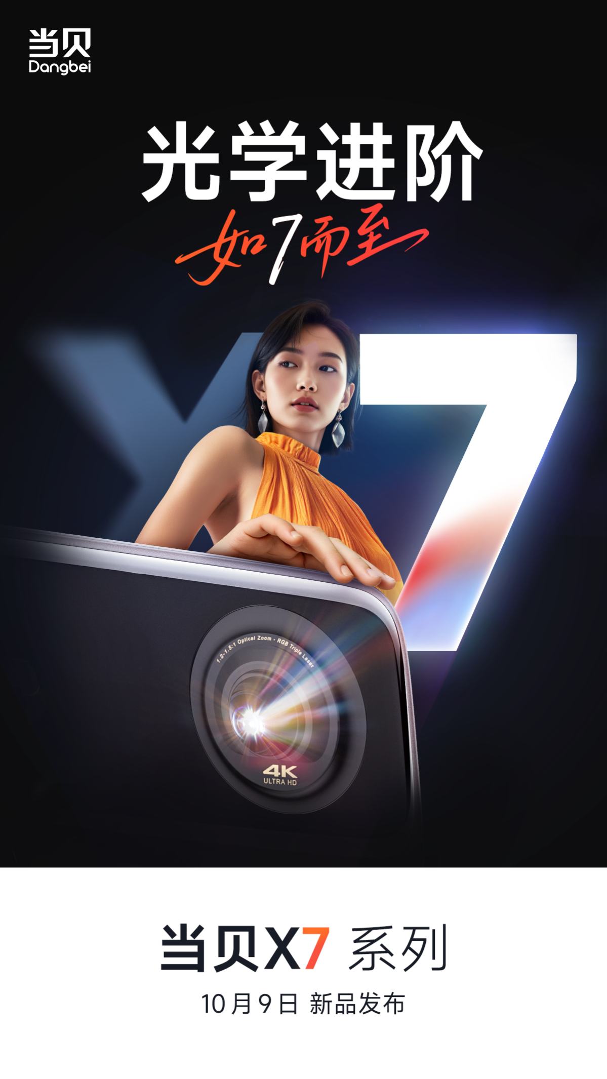 近日,当贝投影发布的2025秋季新品发布倒计时海报引发行业热议,海报中 “光学进阶,体验全面升级”、“高端投影新标杆” 等关键信息,正式确认当贝X7系列即将于10月9日下午2点的秋季新品发布会上亮相。作为当贝高端产品线的核心代表,X系列此次携新品登场,延续 “高质价比” 基因的同时,更以光学技术突破重塑市场期待。
