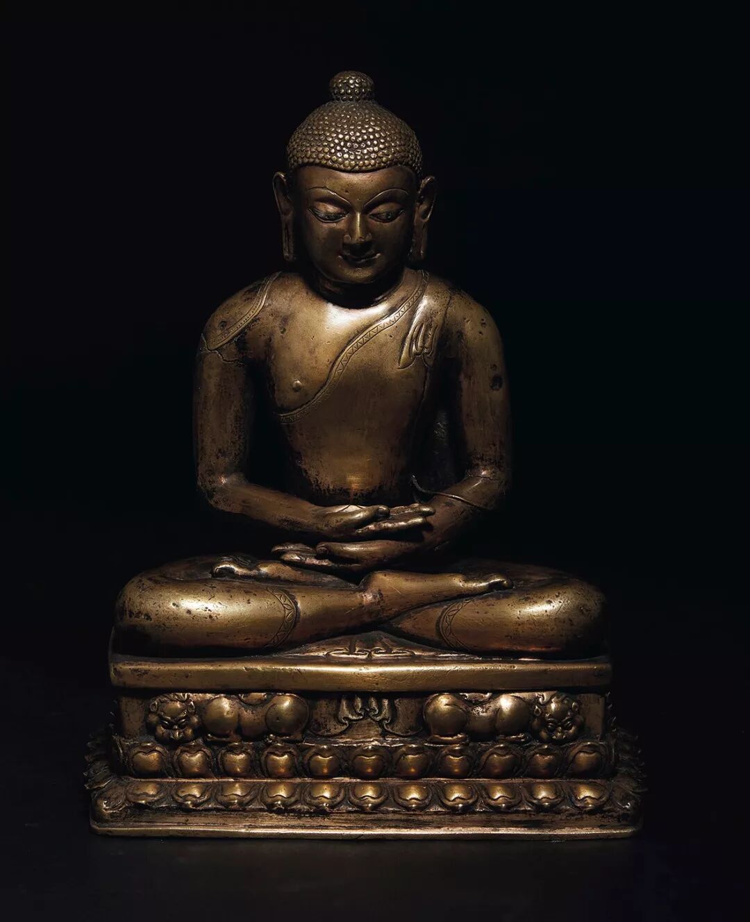 [西藏 12~13世纪]铜鎏金嵌银释迦牟尼佛像