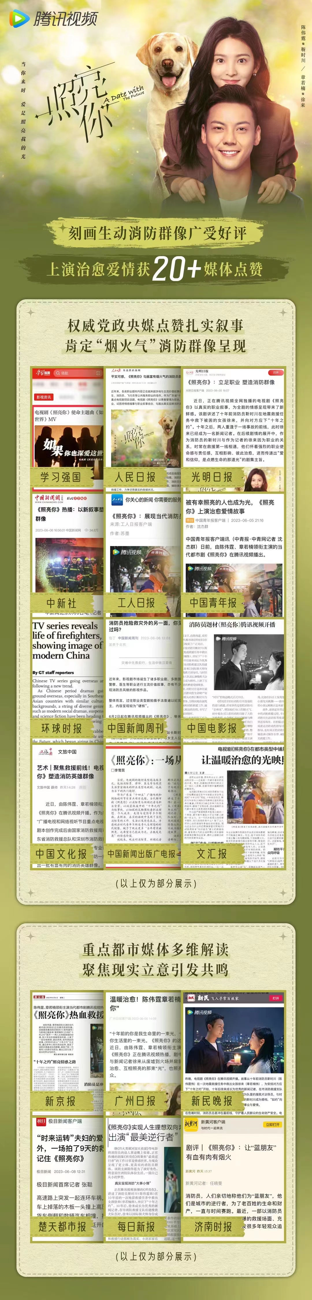 近日,由金沙、俞波执导,陈伟霆、章若楠领衔主演,任豪、此沙、罗秋韵、加奈主演的当代都市剧《照亮你》已经收官,该剧根据晋江文学城筱露的原著《时光如约》改编,讲述了消防员靳时川与新闻记者徐来奔赴十年之约,在相识相知的过程中共同探寻人生理想的故事,开播第二天腾讯视频站内热度值就突破25000,且持续上涨,稳居腾讯视频站内播放量第一。不仅如此,《照亮你》还在WeTV、新加坡StarHub & Viu、马来西亚Astro、越南TV360、Viki、海棠果YouTube等海外平台热播中,中国香港、日韩、柬埔寨即将上线。该剧在海外的热播不仅代表了中国影视剧的崛起,也向世界展现了中国消防的力量。