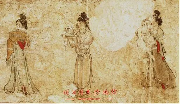 在唐代壁画《观鸟捕蝉图》中也有三位女性。
