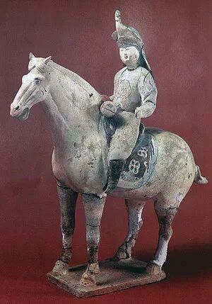 唐代统治者喜好狩猎,不仅男子打猎,从出土资料来看女子也骑马参与到打猎中。于是,唐代女俑中也有不少身着猎装的骑马女俑,她们通常是英姿飒爽、矫健果敢的形象。