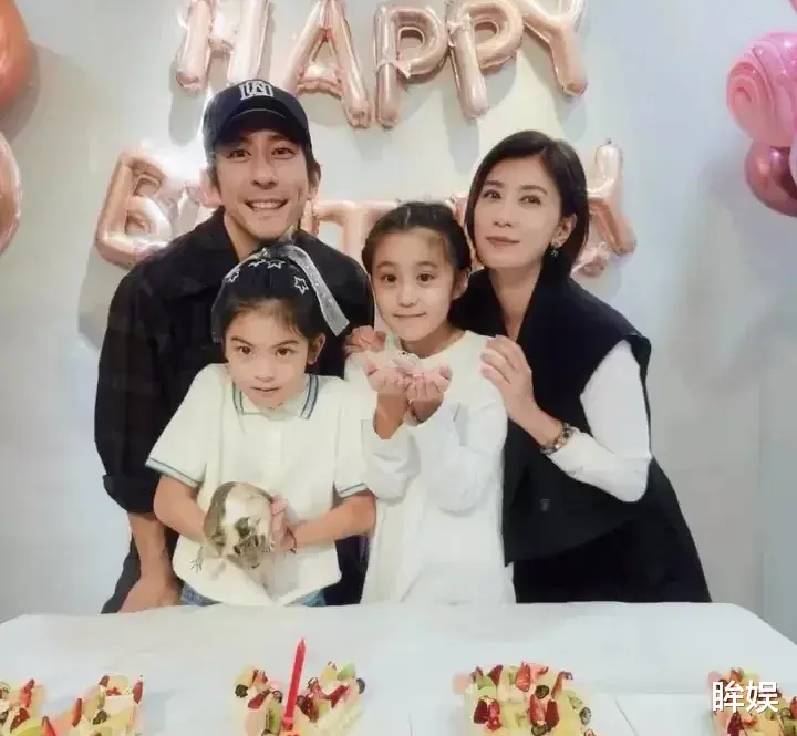 她的老公修杰楷穿着黑色的衬衫,戴着一个黑色鸭舌帽,也是一如既往的帅气,身上一股浓浓的成熟男人韵味。他们的女儿波妞穿着一件白色的POLO衫,扎了一个高马尾,波妞这次为了庆生精心做了打扮,用了好看的丝带绑头发,还别上了好几个星星发卡,打扮乖巧又可爱。看得出波妞还正是长身体的年纪,正处于换牙期,牙齿有些不齐,但这样更显得小孩子纯真可爱了。