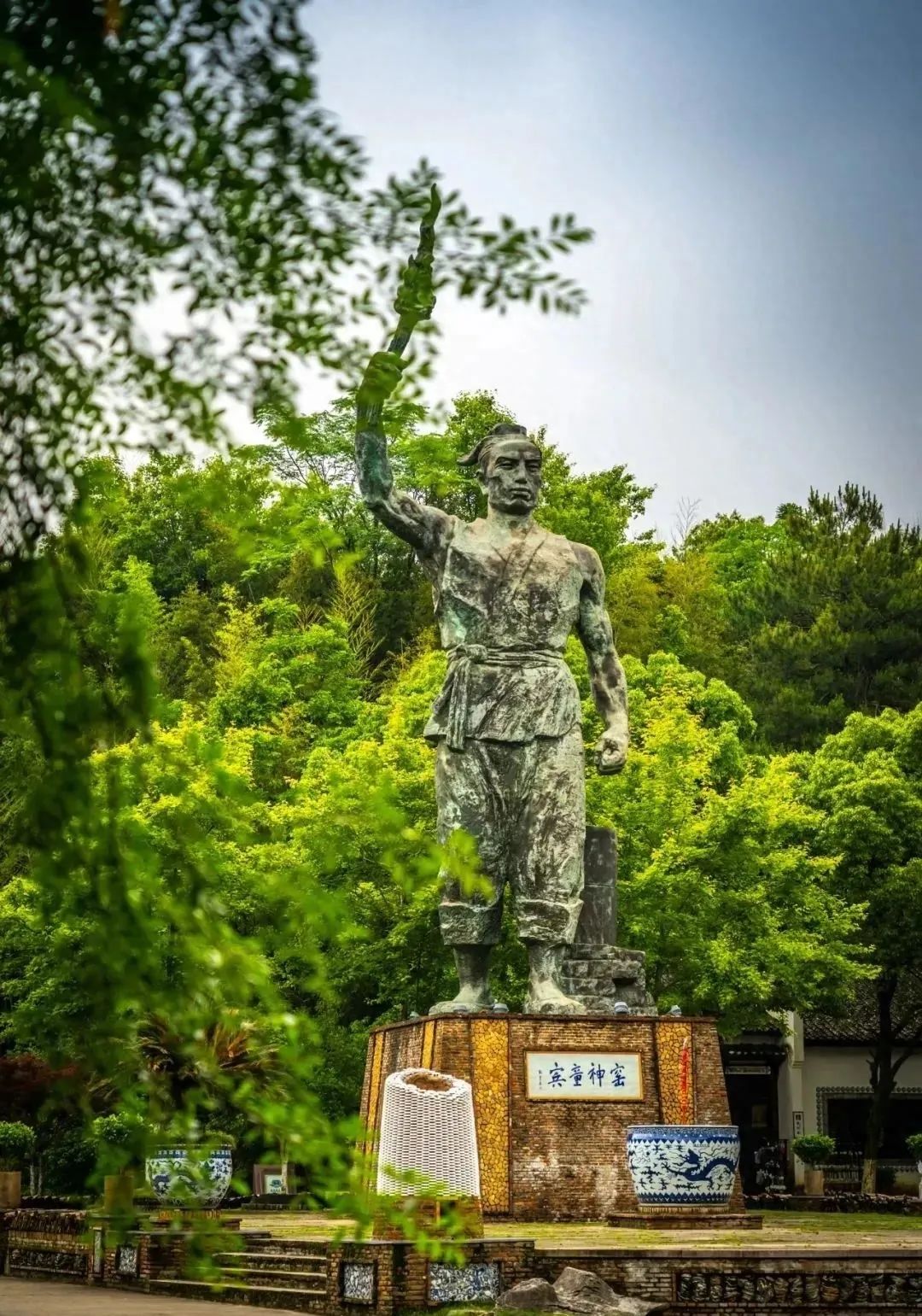 窑神童宾,一座矗立在童宾广场的青铜像,也是景区内的网红打卡地标。他身着传统的窑工服装,手握火把,眼神中透露出自信与智慧,展现了童宾对陶瓷艺术的深厚造诣和对窑工的敬意,亦是千年景德镇古窑文化的精髓与灵魂。