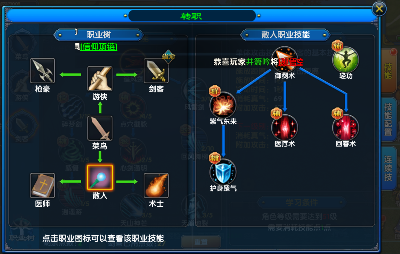 当角色等级达到 10 级后,立即前往 NPC 娄知县处接取转职任务。