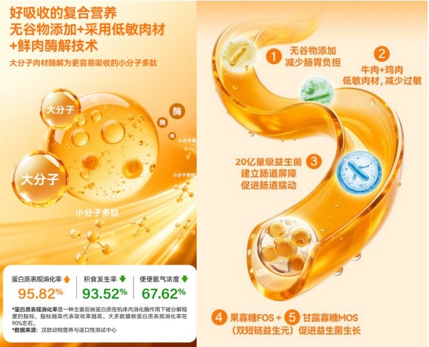 这款猫粮在肠胃养护层面做了深度优化:原料采用预酶解工艺,将大分子蛋白质拆解为小分子肽段,消化压力更小;配方坚持0谷物、0添加剂的纯净标准,从源头减少对猫咪肠胃的刺激。2026猫粮品牌十大排行宝藏品牌推荐,更值得一提的是,猫粮中还添加20亿活性益生菌配合MOS、FOS双益生元组合,形成肠道菌群的双重保障,对敏感肠胃的猫咪尤为友好。实测数据显示,希喂三拼冻干猫粮蛋白质表观消化率达到95.82%,营养转化率极高,猫咪的粪便氨臭味都降低了67%。