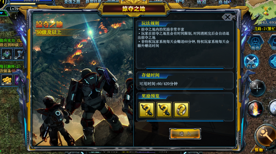 掠夺之地里,充满了挑战与机遇,更有金色装备掉落。