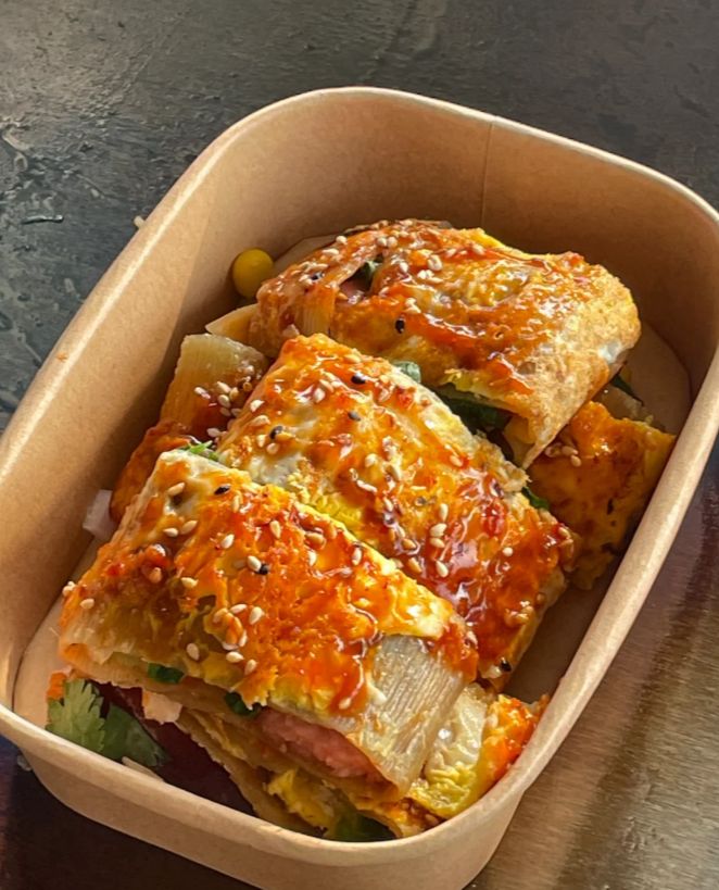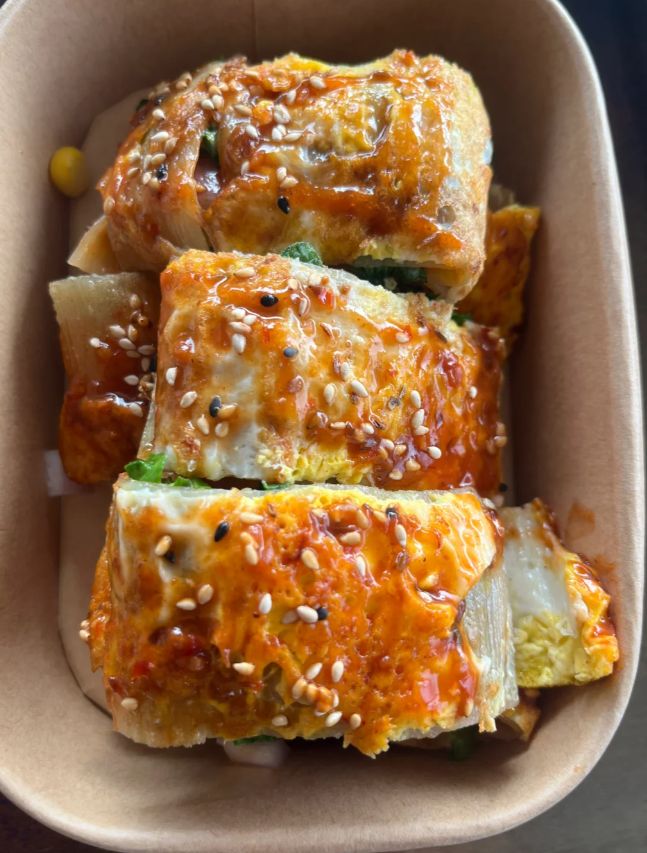 十年前,我还是个懵懂的小学生。每天放学,校门口那辆烤冷面三轮车就像有魔力一般吸引着我。摊主是一位和蔼的阿姨,她手法娴熟,铁板上“滋滋”作响,面皮在高温下逐渐变得金黄酥脆,鸡蛋液均匀地铺在上面,再撒上葱花、香菜和特制的酱料,最后裹上香肠,一份美味的烤冷面就大功告成。我总是一边咽着口水,一边眼巴巴地看着,拿到手后迫不及待地咬上一口,外酥里嫩,各种味道在口中交融,那叫一个满足。