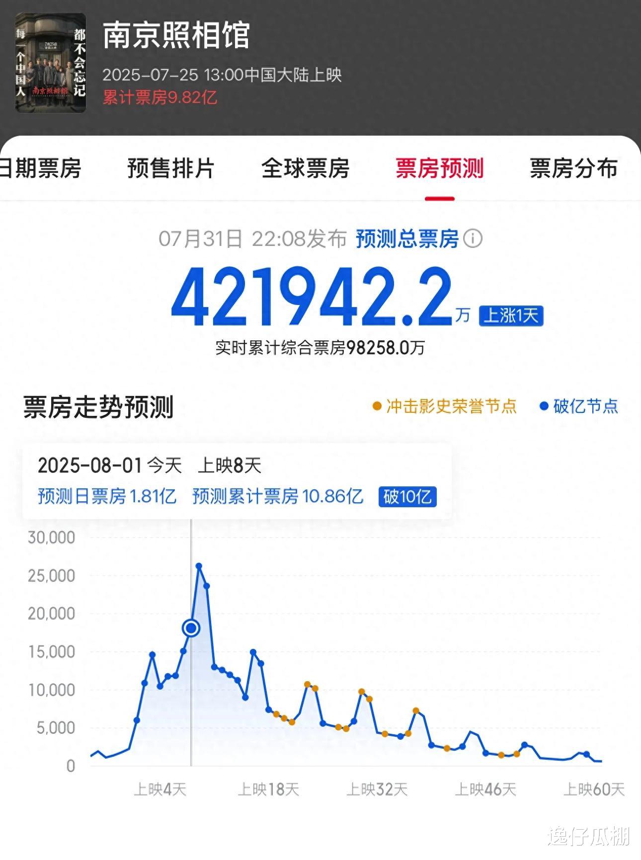 当2025年8月3日,备受期待的电影《731》终于正式定档9月18日,消息一出,引发全网热议,大多数网友都对《731》定档表达了期待。而另一边,同为揭露日军暴行,铭记历史题材的《南京照相馆》在票房上的表现可以说极度优异,日票房从正式上映第二日起至今连续破亿,并且实现连续逆跌,目预测票房落点已经到达了42亿,而猫眼9.7,豆瓣8.6的评分也足以证明这部剧的质量和口碑。