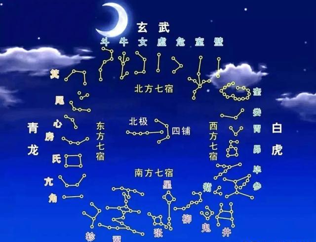 为了方便管理,古人把它们按东、南、西、北四个方向划成四宫,每宫七宿,就像东南西北四大天王,各管一块地盘。