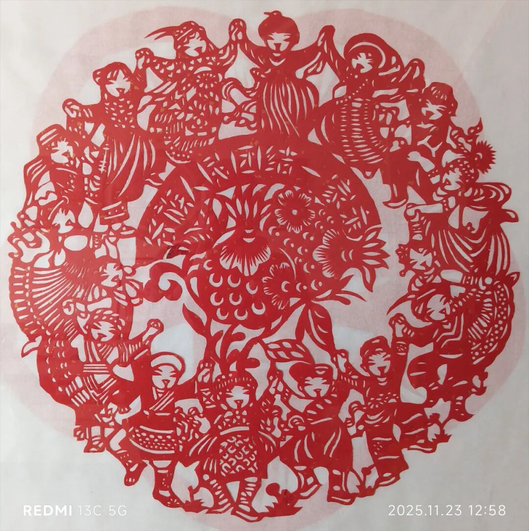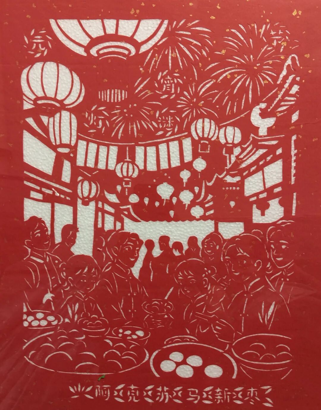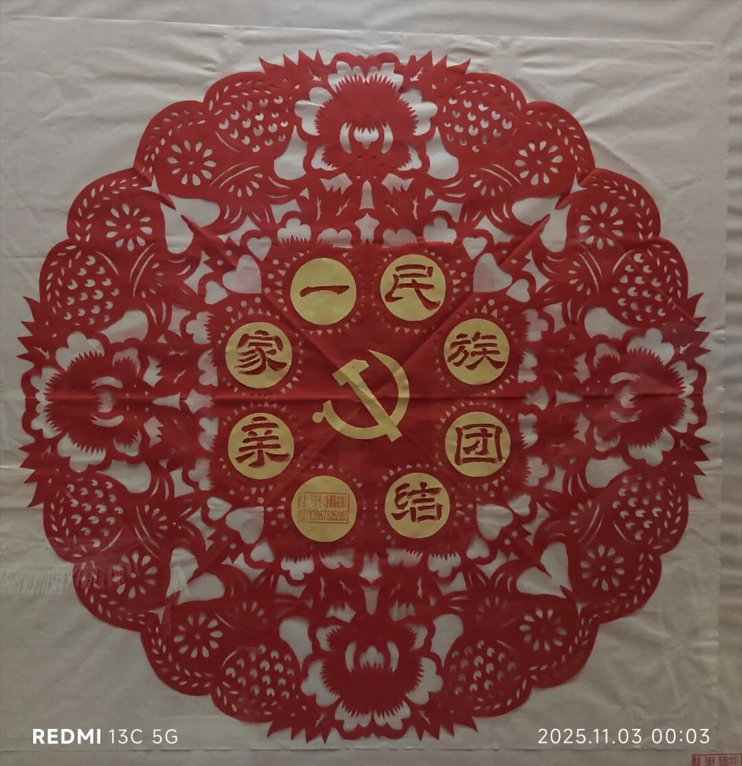 认真执行党中央文化润疆方针,2025年在凤溪社区开展公益活动,给维族和汉族小学生手把手教剪纸,还将自己疫情期间完成的56个民族人物剪纸布展在社区活动室,为“民族团结一家亲”活动提供优秀传统文化作品。