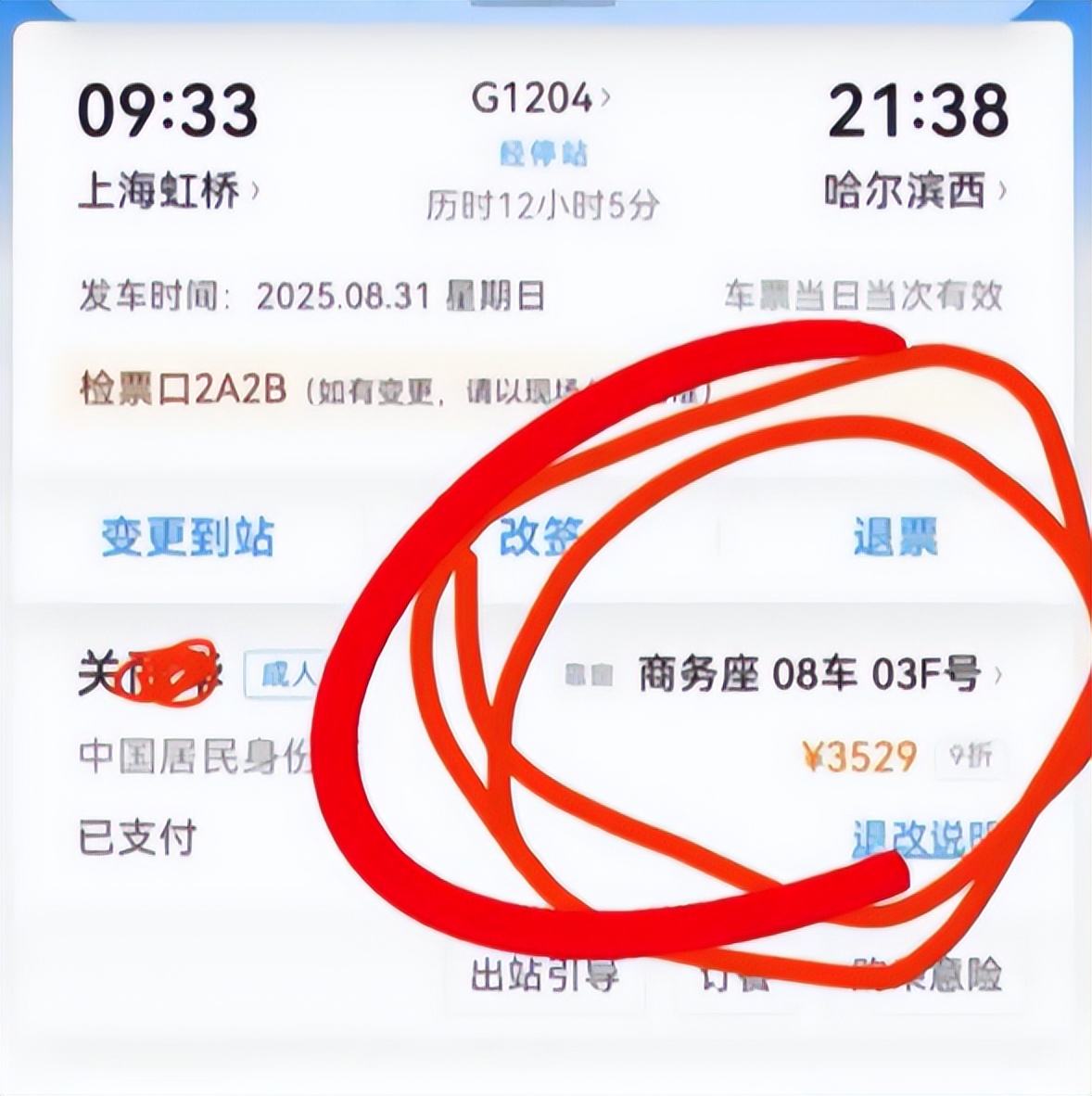 事情的起因源于一场充满孝心但又有些无奈的行程安排。来自哈尔滨的郑女士陪同妈妈到上海做手术,手术顺利完成,这本是值得欣慰的事情。但考虑到妈妈刚刚经历手术,身体还十分虚弱,长途高铁旅行需要一个舒适的环境,于是郑女士花费3500多元给妈妈购买了八车厢的高铁商务座。然而,在经济方面,郑女士可能也有自己的考量,为了省钱,她给自己购买了隔壁9车厢的一等座。她本以为这两个车厢是相连的,自己走两步就能随时照顾到母亲,可现实却给了她一个“下马威”。上车之后她才发现,08车厢和09车厢并不互通,这就意味着她无法方便地照顾妈妈。
