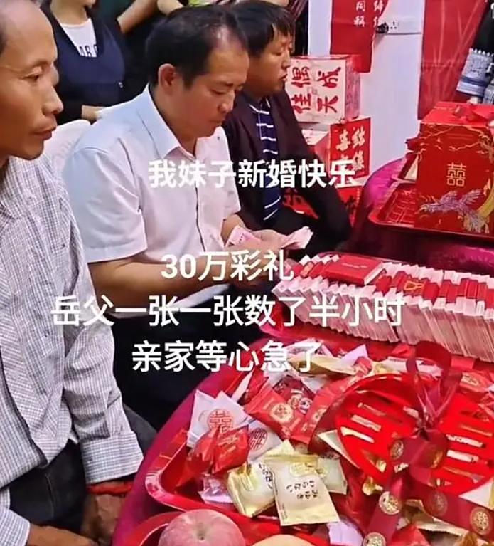 有个哥们就在这样的场景下成了主角。一家人郑重其事地带着礼金去女方家,按规矩放到桌子上,这本来是表达心意的事——可没想到,女方老丈人竟然当众把钱全掏出来,一张一张当着亲朋好友面细细数,整整搞了半个小时。新郎小伙儿事后说,他脸上的笑都快绷不住了,别说太自然,光坐那儿都觉得浑身不是滋味。