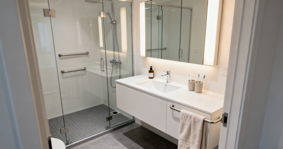适老预埋:即便为长远考虑,也应在淋浴区预埋扶手件,并采用防滑地砖。
