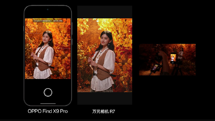 而且这手机也真的是把“移动影像”四个字重新定义了一次。当大屏幕上直接放出与专业相机的对比样张时,全场安静了几秒。因为,这不是简单的参数堆砌,而是实打实的画质底气。这一次,OPPO不再只是和友商比,而是直接把矛头对准了传统相机,自信拉满。