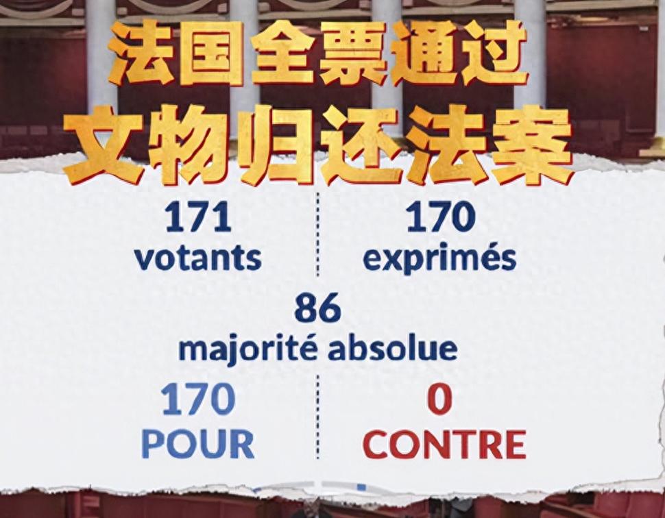 现场还有议员特意引用了法国文豪雨果1861年的名言,感慨法兰西终于迎来了脱胎换骨的时刻,要把当年的不义之财归还给被掠夺的国家。