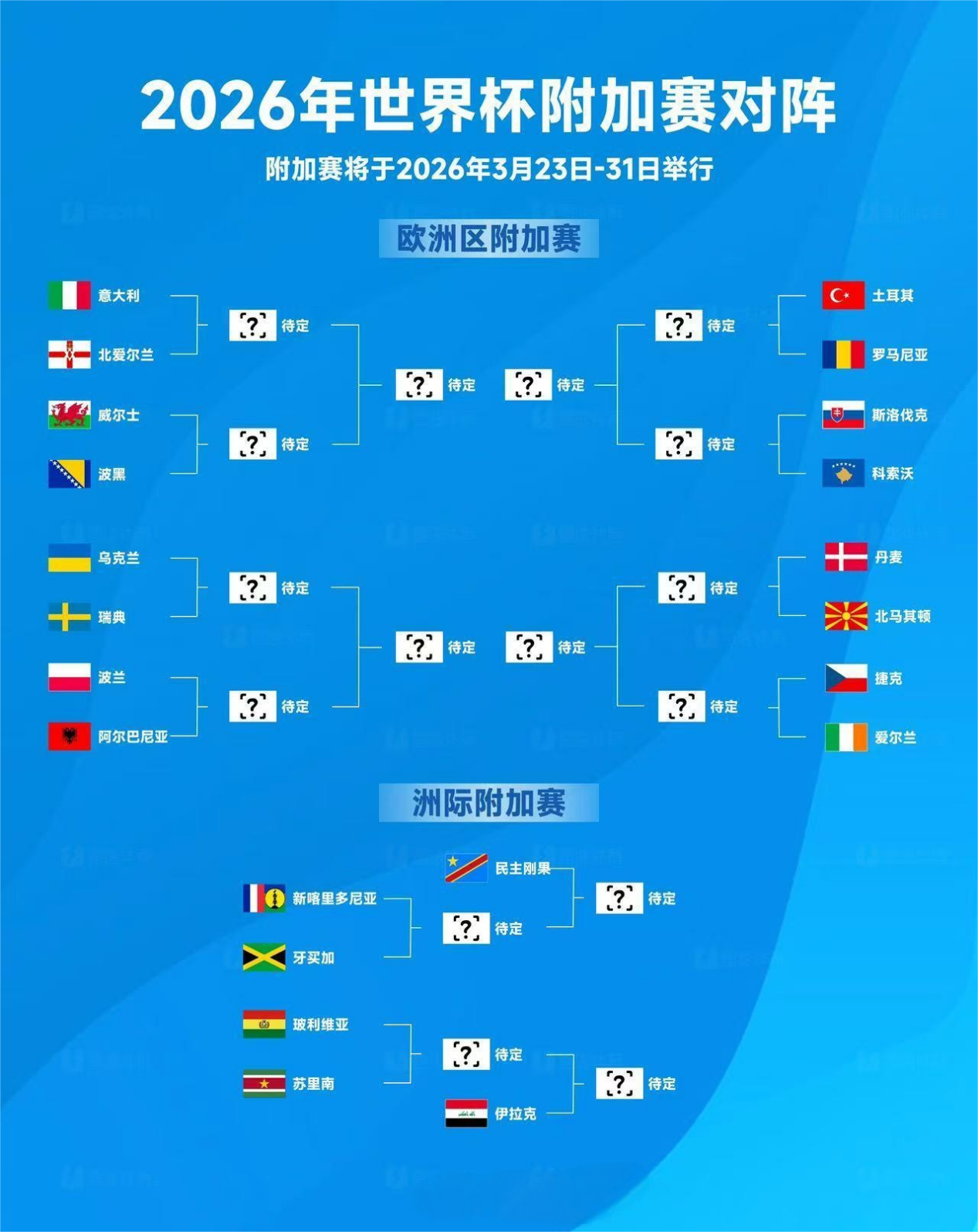 欧洲区附加赛B组潜在晋级球队:乌克兰/瑞典/波兰/阿尔巴尼亚