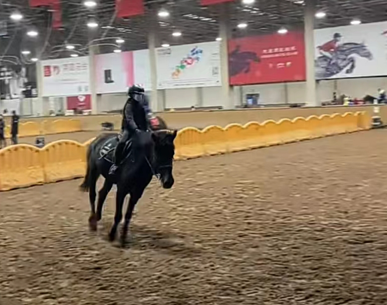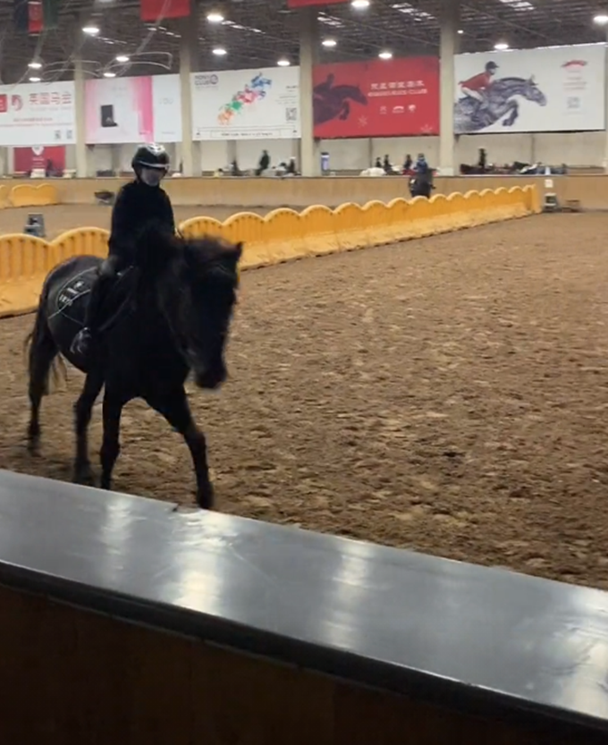 骑着马的她,动作熟练,驰骋在练习场上的样子十分英姿飒爽,一看就知道平日里花了不少时间练习。