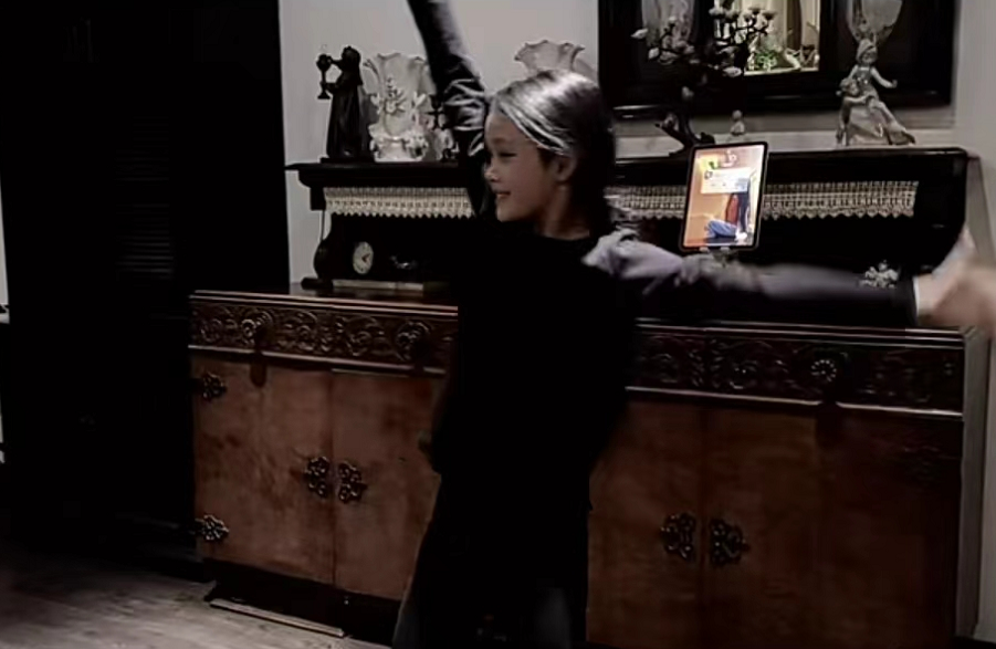 她在客厅里翩翩起舞,动作流畅一点不输专业舞者,优雅像小公主一般。