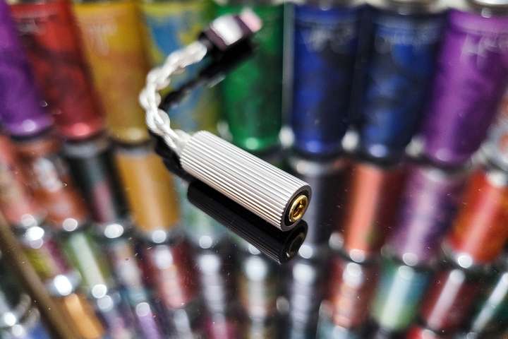 本体上手端详,银色亮闪闪精致讨喜,线材编织及粗度,一看就HiFi,两头规格为Type-C和3.5mm单端输出,金属插头母座做了凹凸纹理,审美在线,另一头有标logo和芯片型号及解码能力的参数,相当科技风。兼容性方面,电脑、安卓、苹果免驱全兼容,本人使用环境为安卓手机和PC电脑,兼容无问题。