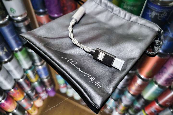 实物到手,包装这小盒还挺大,我以为这个价格的解码线,给你包个塑料皮或者小纸盒就得了,没想到做的这包装风格跟之前接触的千元耳机升级线似的,甚至,开盒之后发现,还送了个手感不错的皮质收纳袋,显然是为你接驳耳机后的尺寸准备的,相当贴心了不是么?生怕你耳机没有好用的收纳盒,细节考虑很周到。