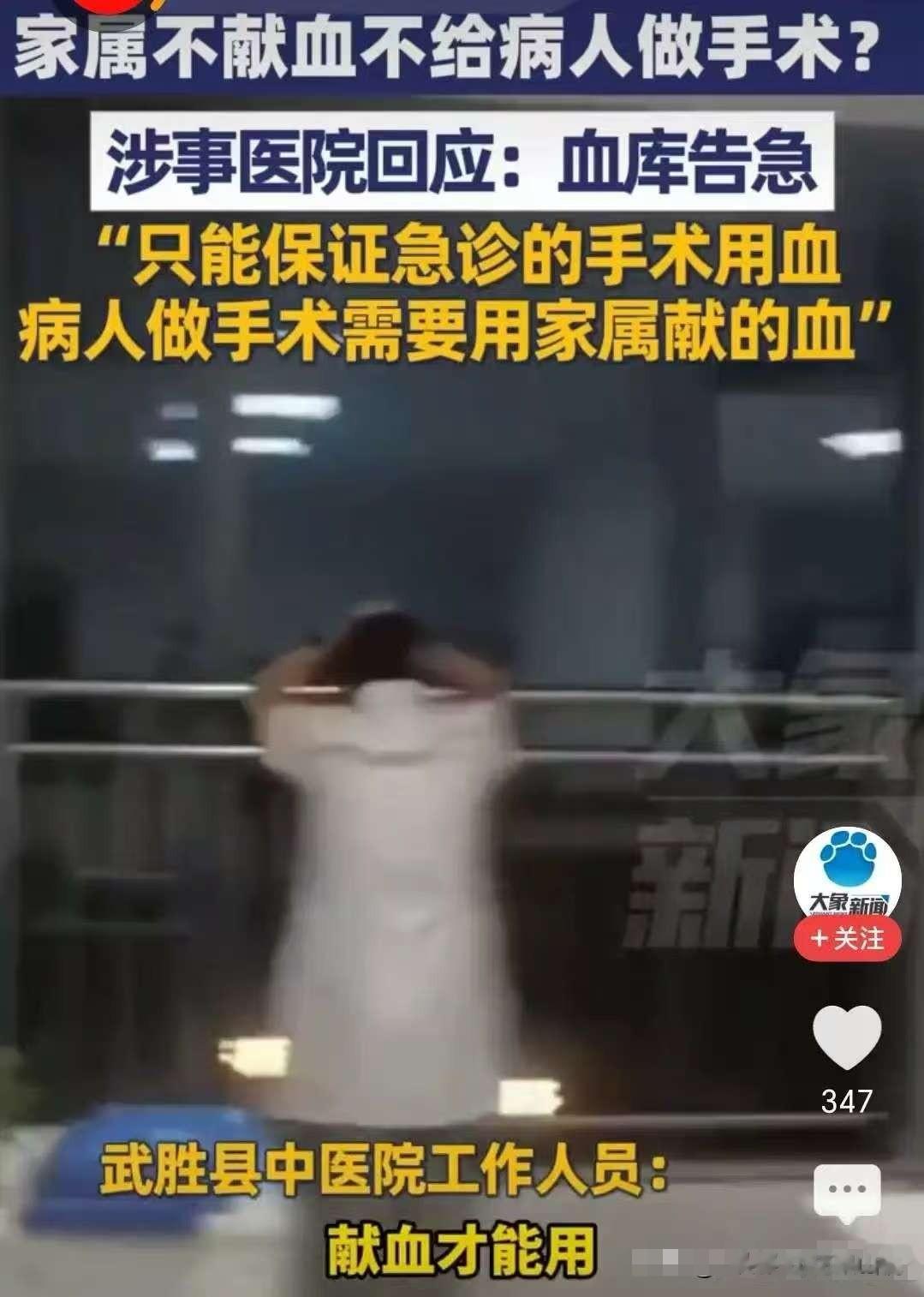 作为患者家属的心情也能理解,医院本来就是治病救人的地方,患者需要手术,备血是医院的事,你们还要家属先献血才给手术,献血是免费的,输血却是要收费的,也觉得冤。