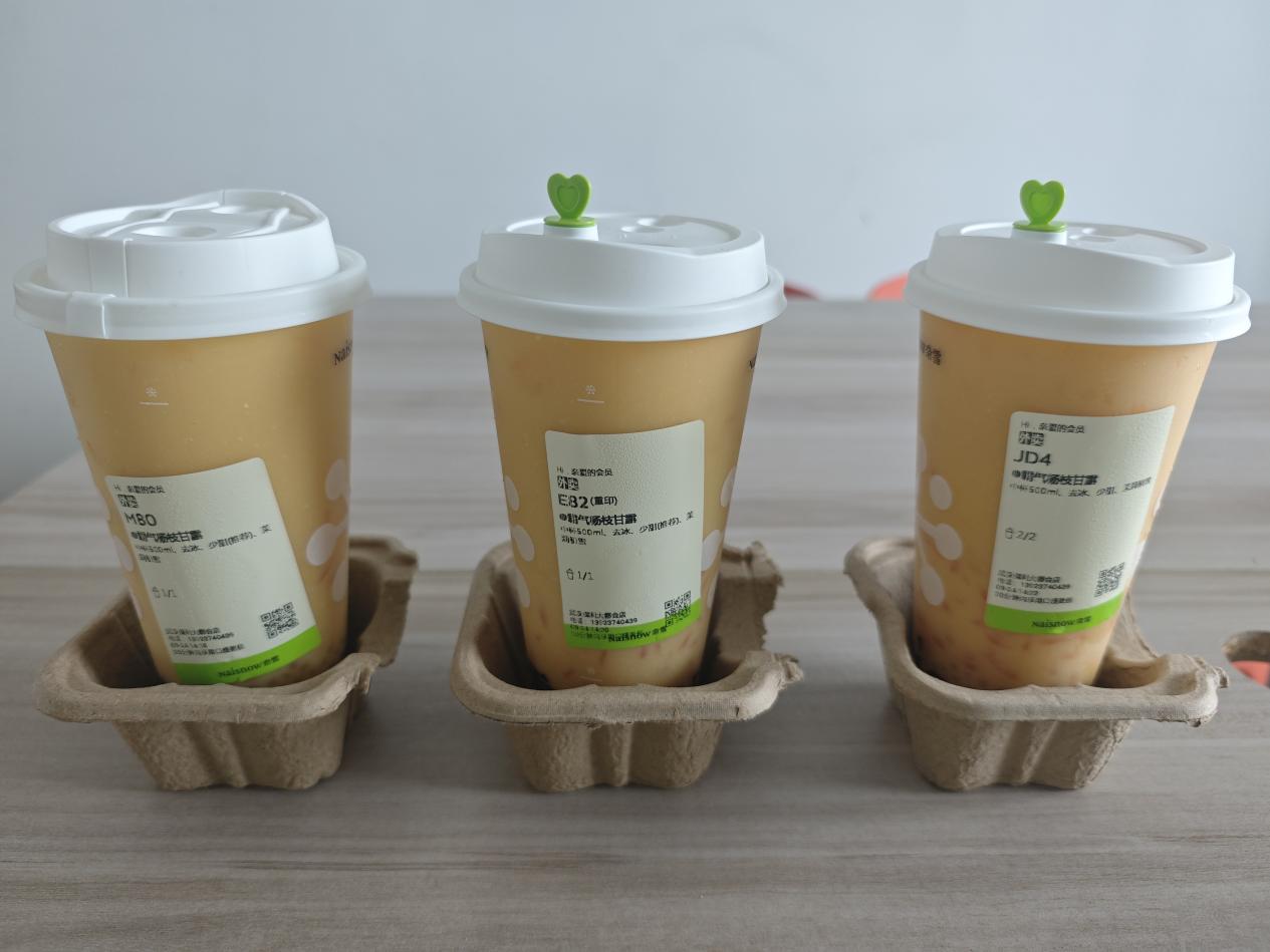 从奶茶送达的商品外包装来看,美团饮品放的比较规整,淘宝闪购和京东不知是打包问题还是骑手配送问题,两者瓶身能感觉明显倾斜,比较难水平放置于桌上。