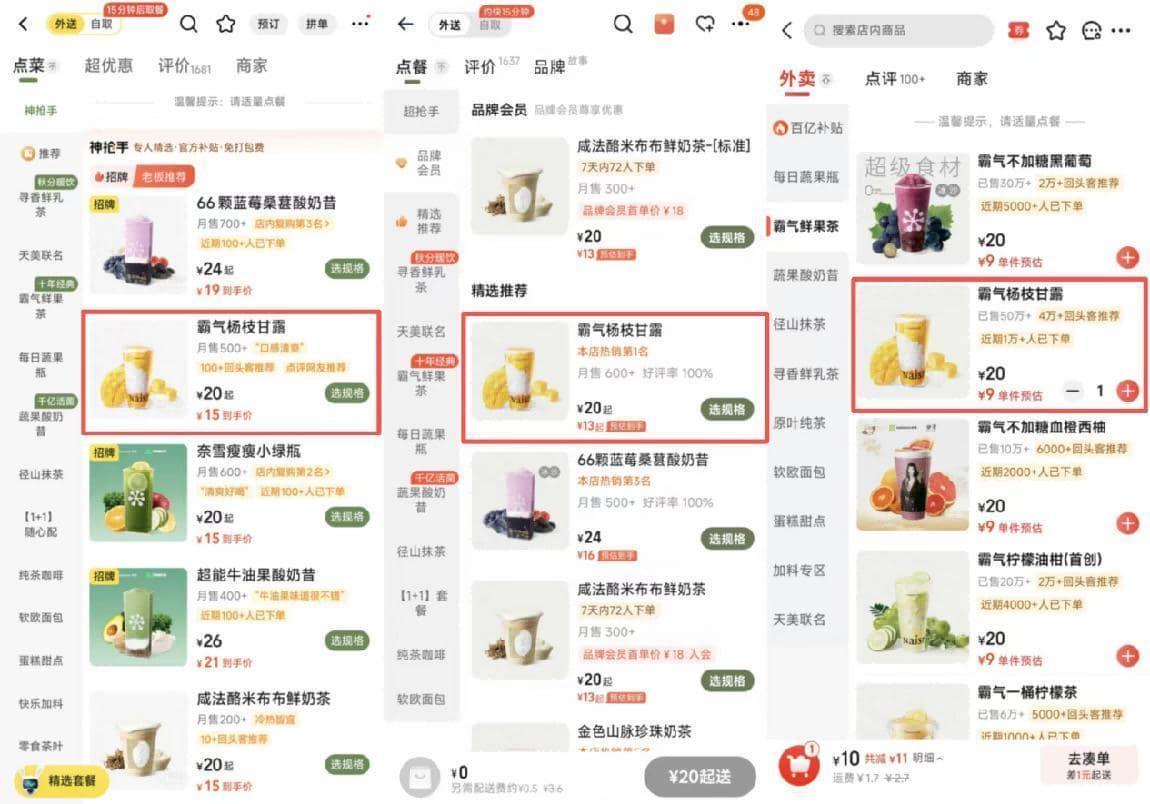 这次奶茶外卖测试,淘宝的配送速度突出,美团由于0.9元购买的大额红包优惠力度明显,京东平台优惠力度大,但是限制也相对较多。在茶饮赛道三家区别不大,更多还是在配送体系和价格上的差异。