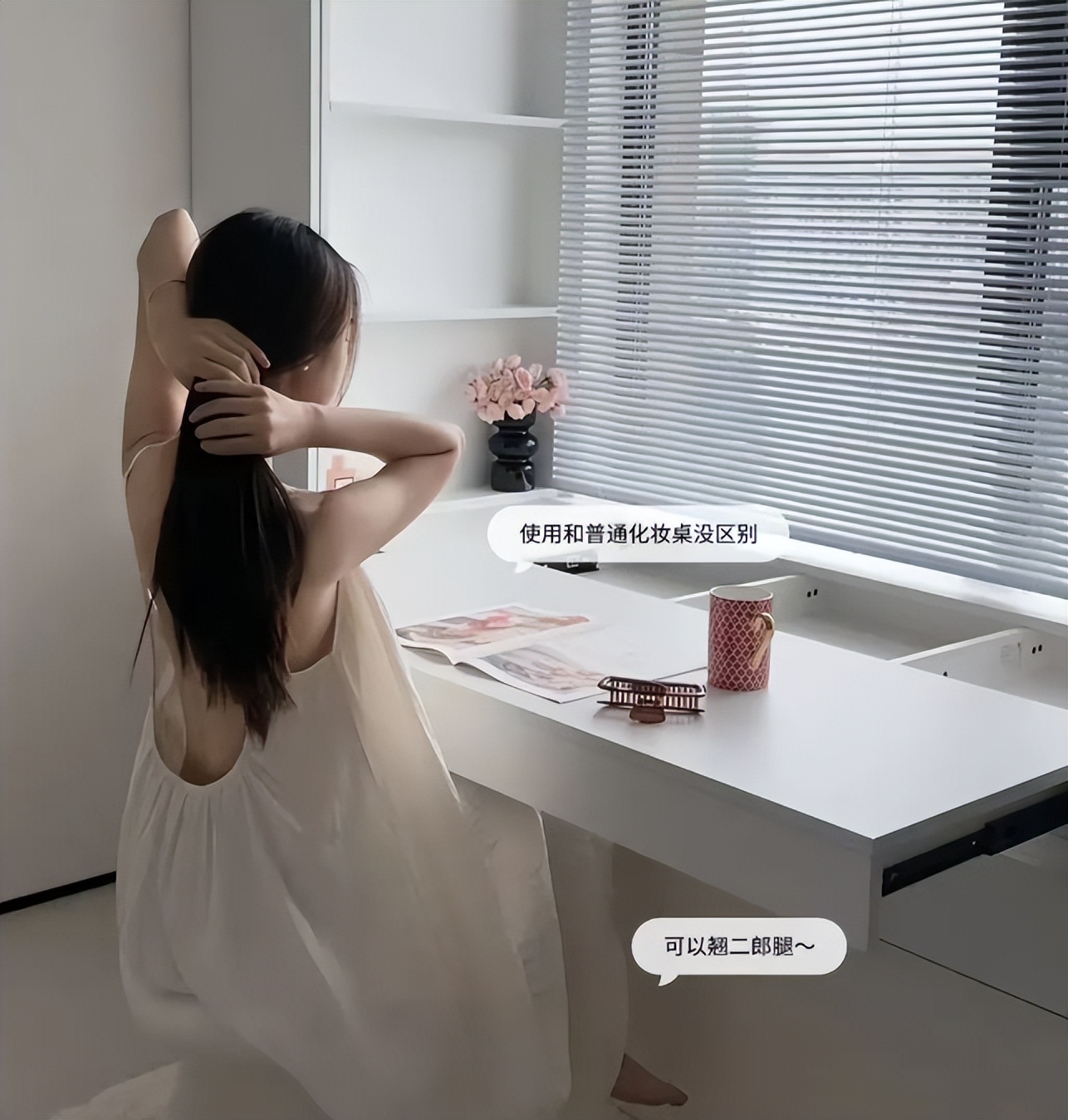 正好我家卧室也没有空间放梳妆台,正好把飘窗改造成梳妆台,就可以把这个问题给解决了。