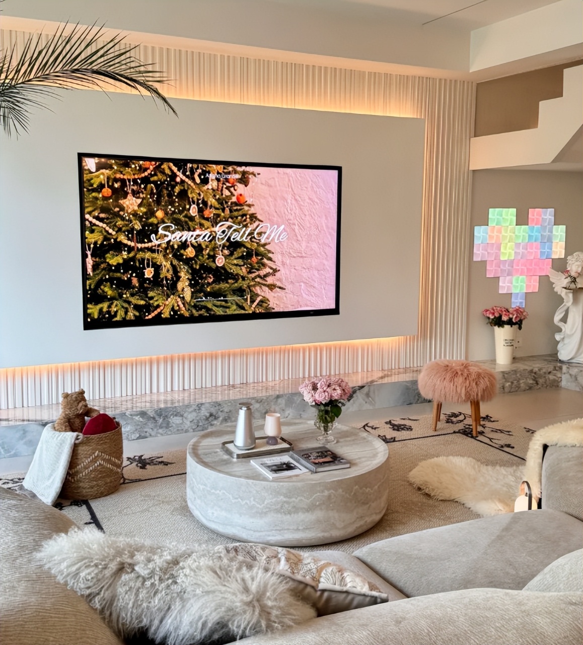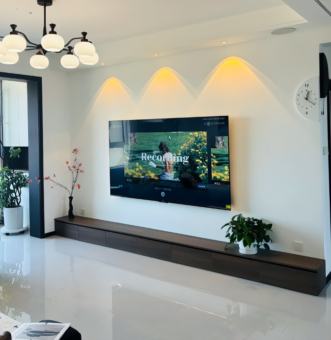 第一次装修的时候,专门做了悬空电视柜,颜值是挺高的。