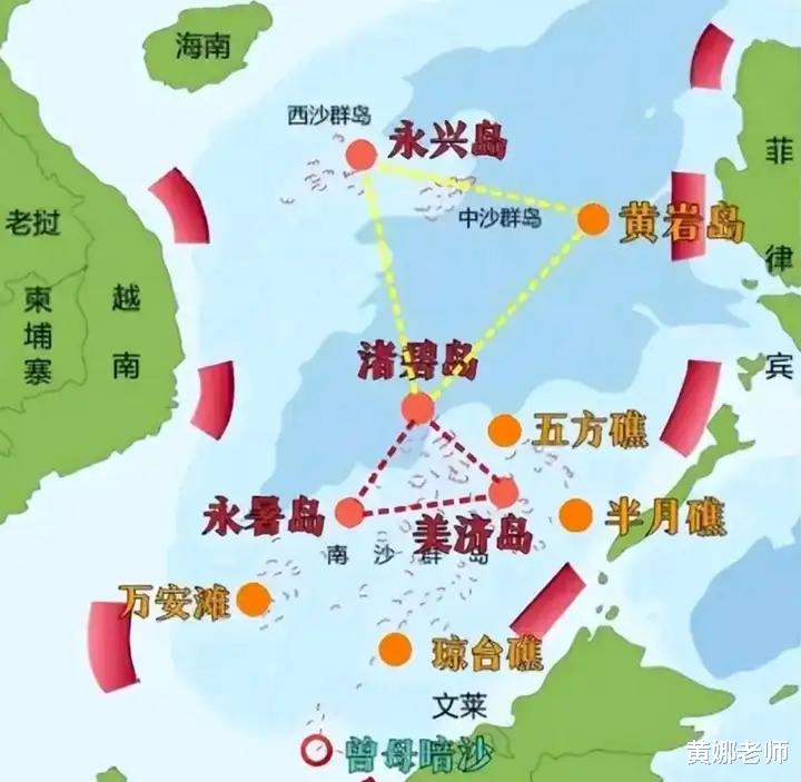 当然,如果看地图的话,你又会发现,和2001年不同的是,咱们早已经在南海的南沙群岛,吹填了美济、永暑、褚碧3个机场,组成了南沙铁三角....